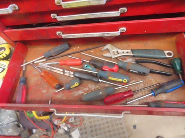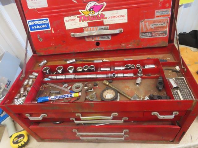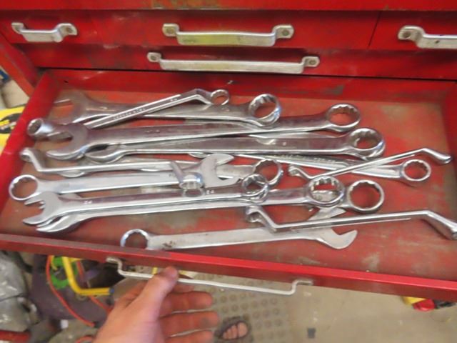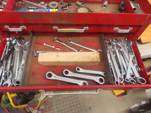 Tool Box with Tools; Wrenches Screwdrivers plus more