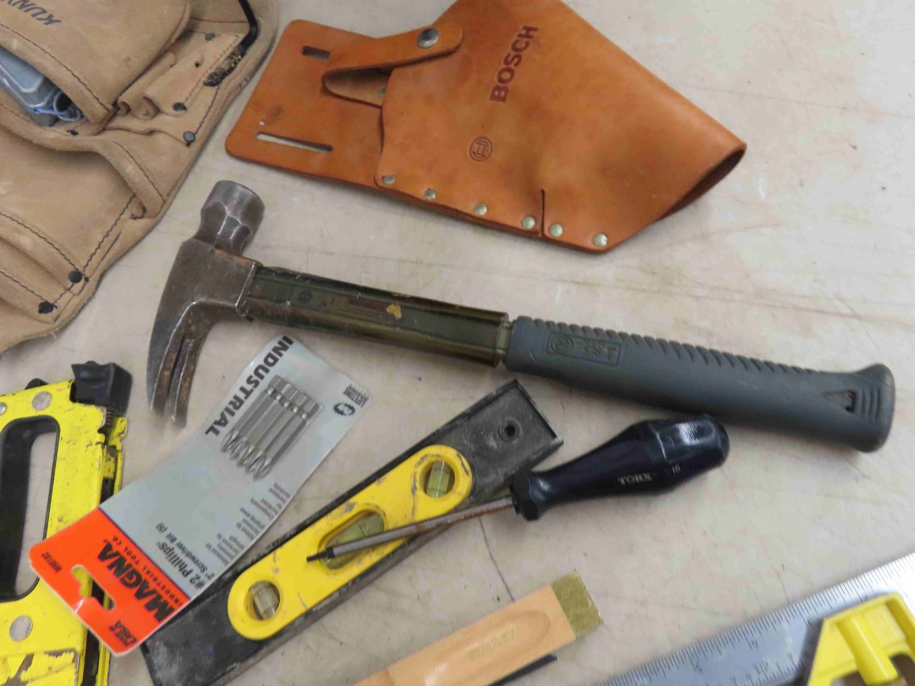Tool Pouch , Saw Blades, Tape Measure, Stud Finder, Some