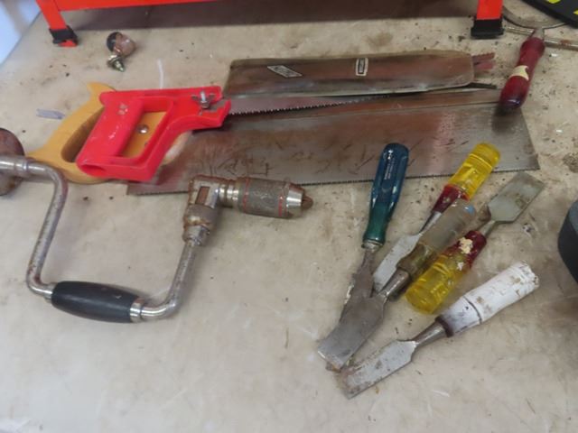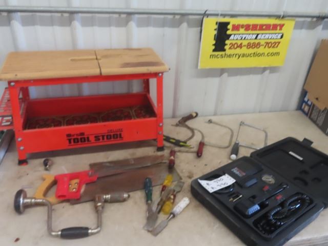 Tool Stool, Saws, Wood Chisels, 12 V Air Compressor