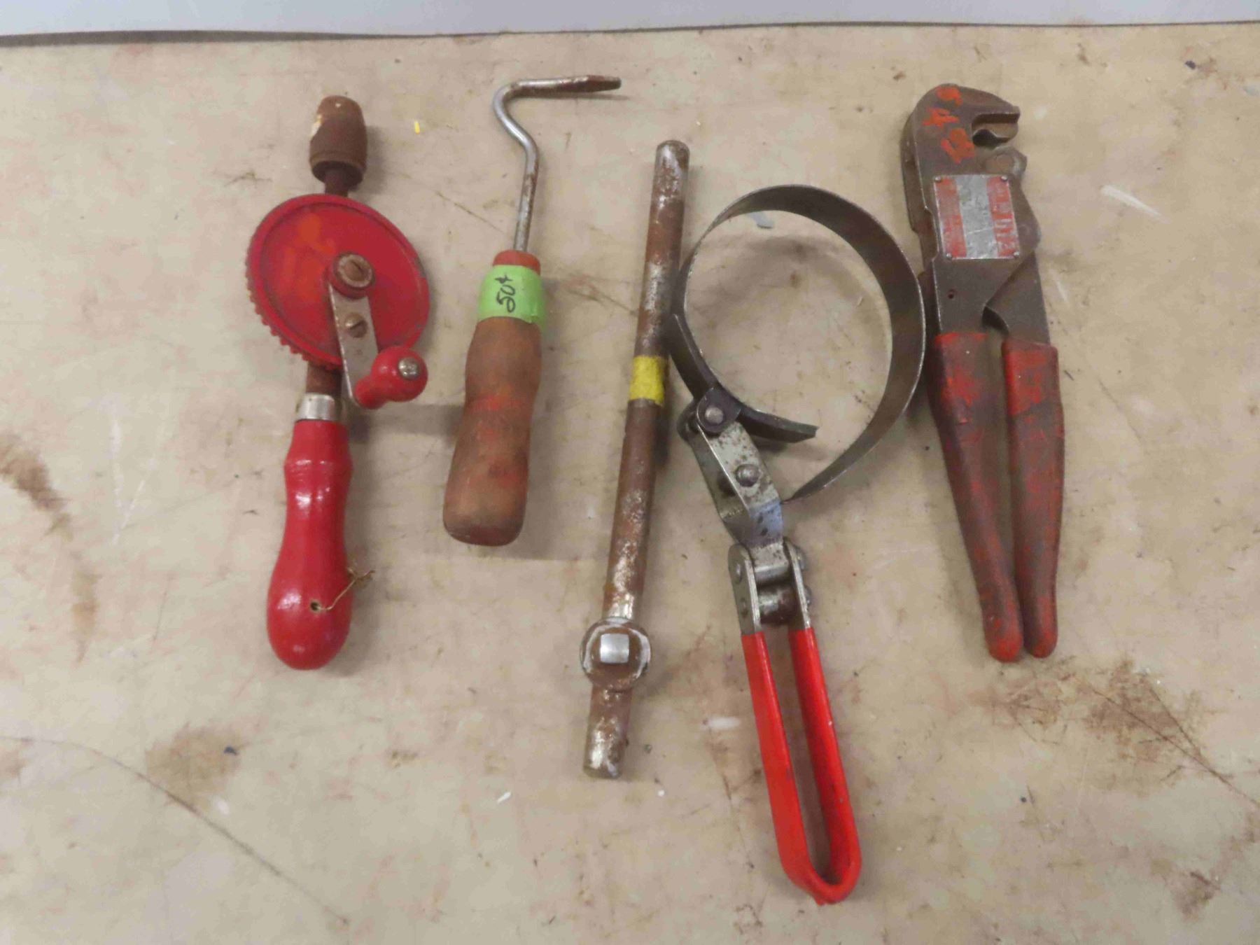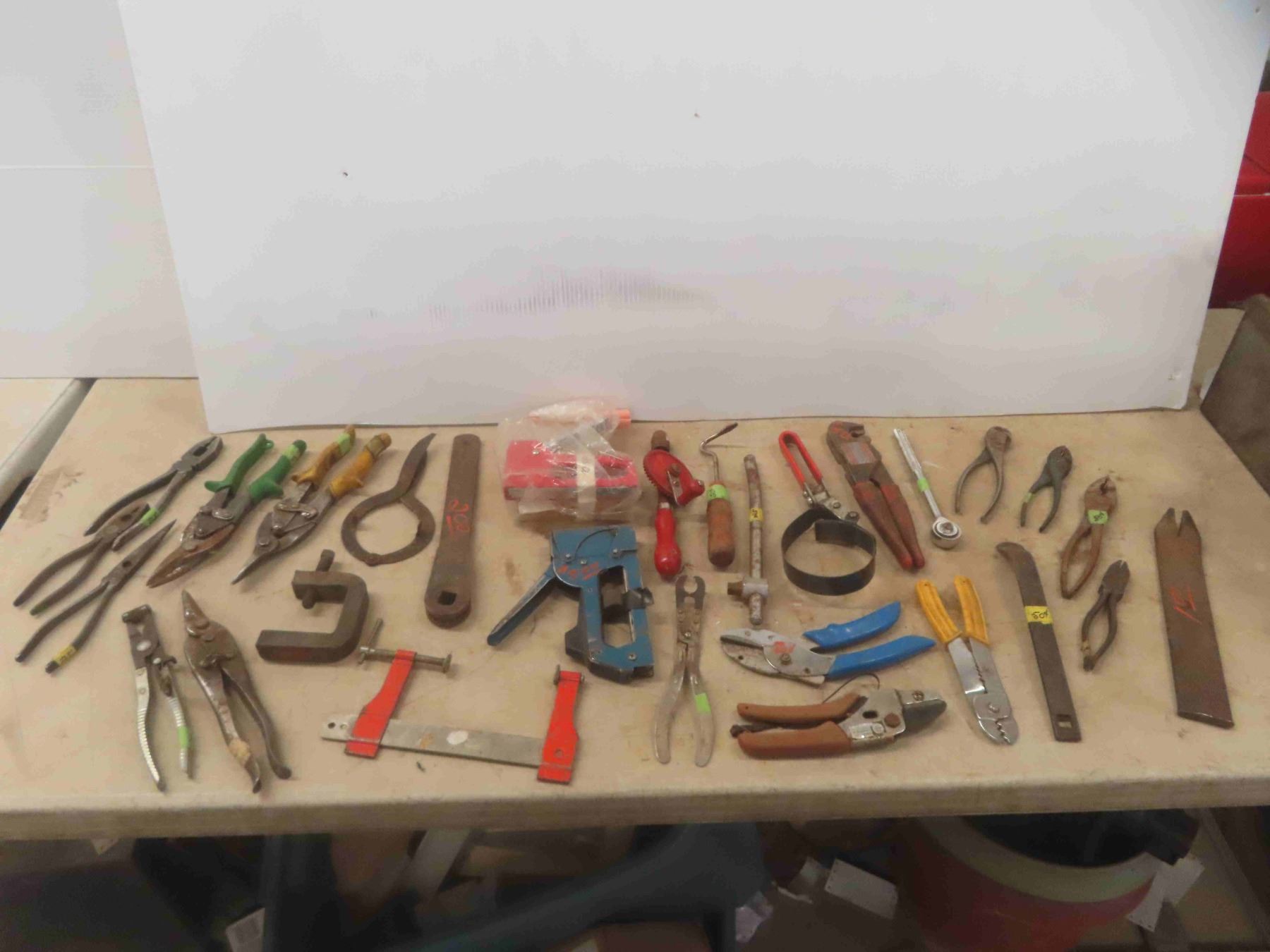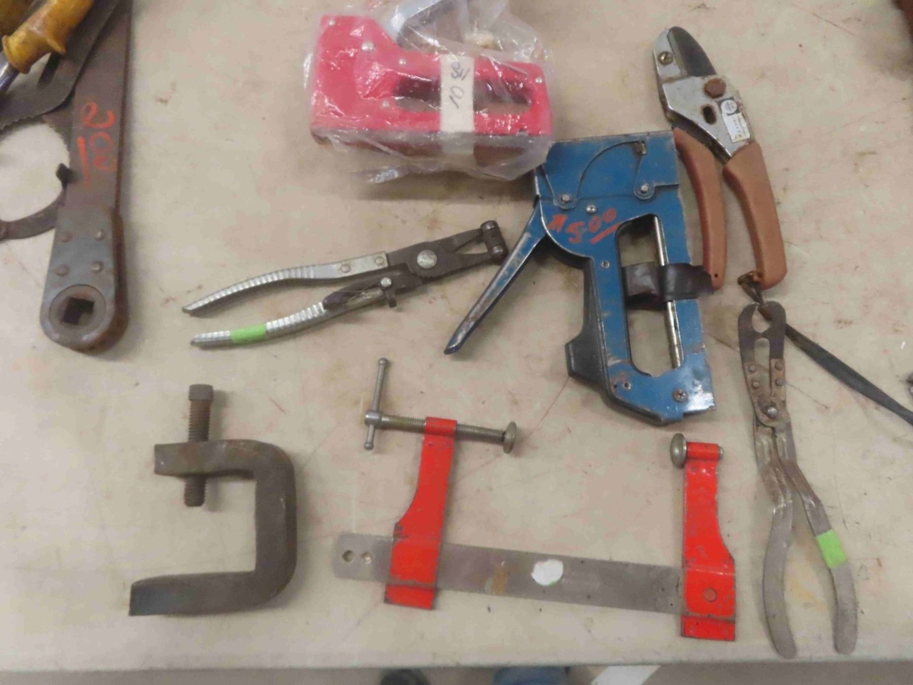 Tools: Tin Snips, Pliers, Manual Drill, Oil Filter, Wrench, Clamp, Staples & More