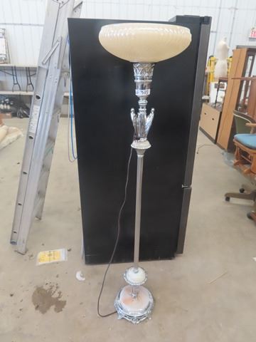 Torch Floor Lamp with Birds + Marble &  Beautiful Shade