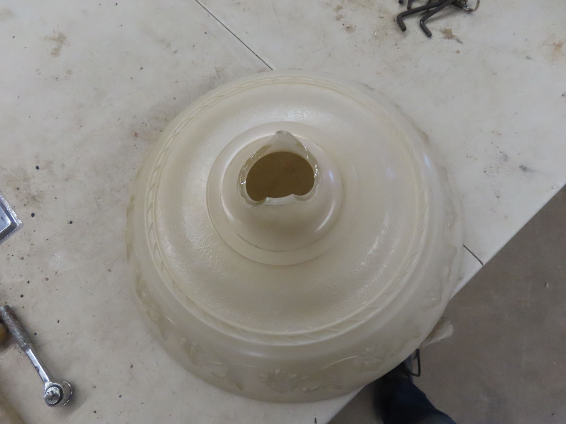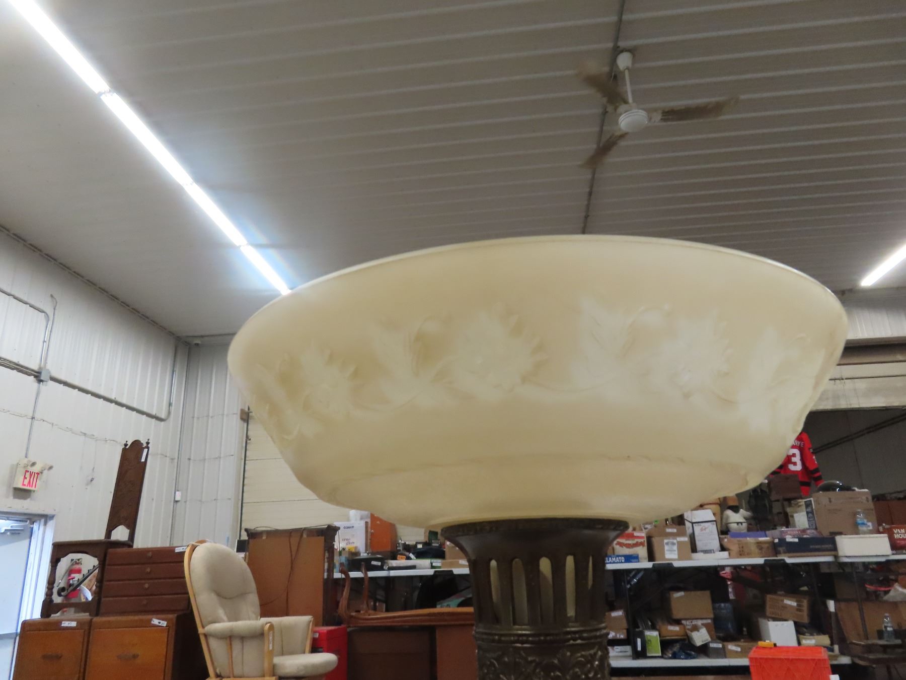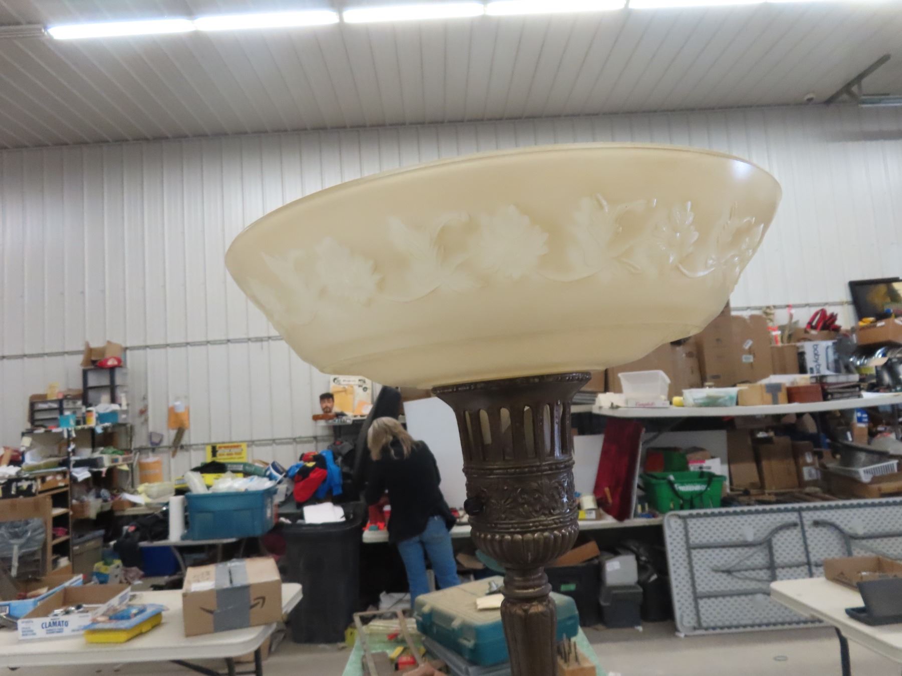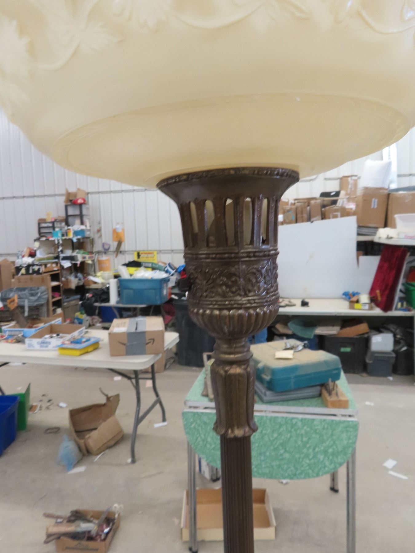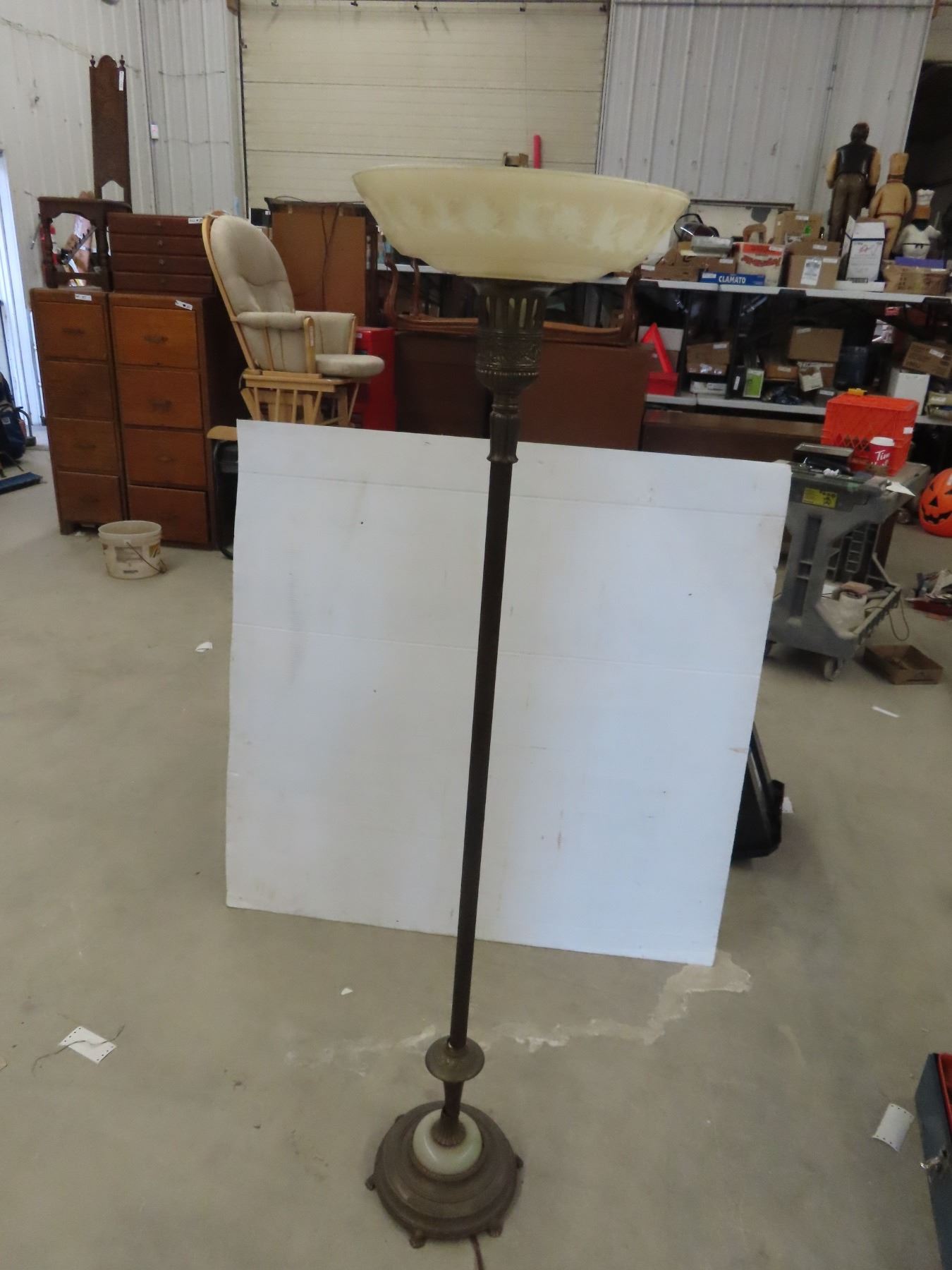 Torch Lamp with Shade , Base Chipped Up But Still Shows Well.
