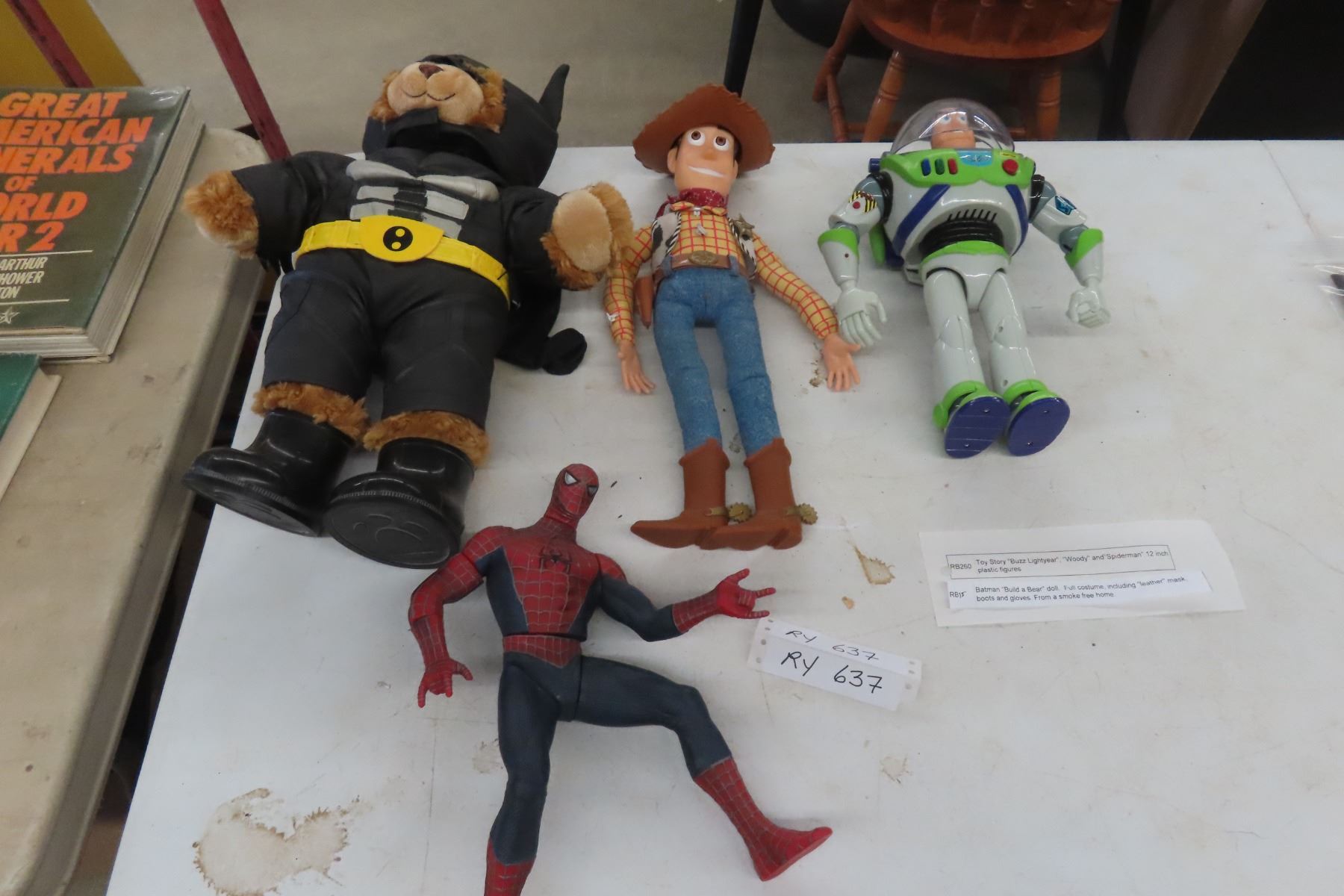 Toy Story Buzz Lightyear, Woody, Spiderman 12" Plastic Figurines + Batman Build a Bear with Full Costume