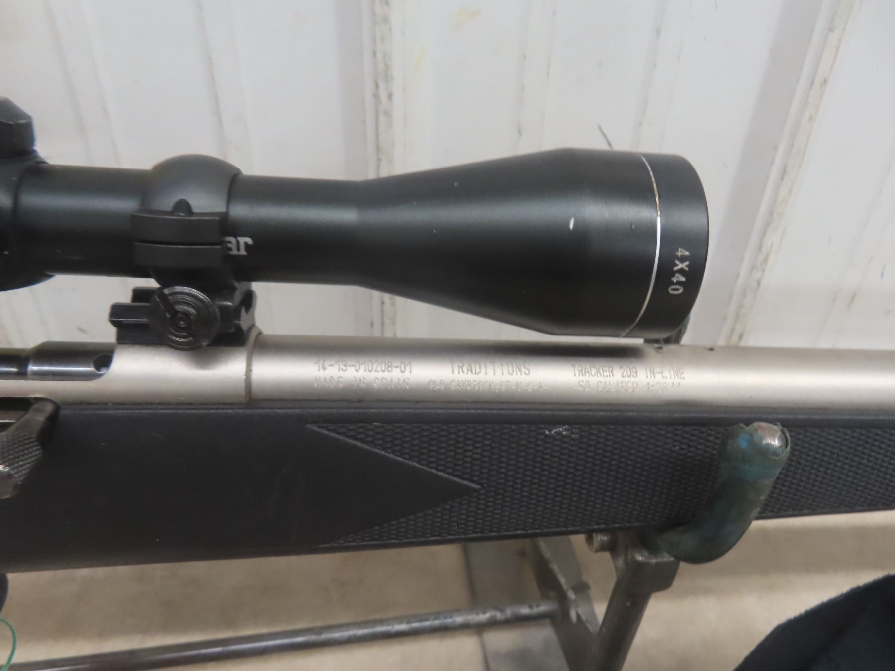 Tracker 209 In-Line, 50 Cal, Serial # 14-13-010208-01, Stainless Barrel, Synthetic Stock with Scope **** Must Have Pal to Bid. Must Get Pal to Us If You Are Successful Bidder in the Auction so We Can Issue Reference Number. We will be in touch with buyers the next day to get Pal Info OR You can send in photo of pal with the email address associated with CFO Account. Thanks! DO NOT PICK UP YOUR FIREARM UNLESS WE HAVE SPOKE TO YOU & HAVE A REFERENCE NUMBER ISSUED.