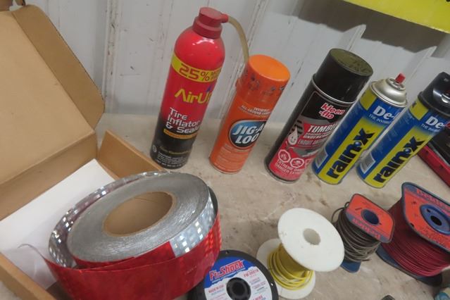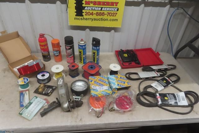Trailer Hitch + Ball, Auto Trailer Signal Wiringm 12V Air Compressor, V-Belts, 2" x 150' Silver Reflective Tape, Lubricants, De-Icer, Lights