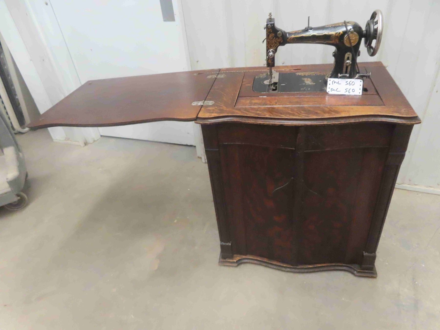 Treadle Sewing Machine, Oak Cabinet 18" x 26" x 31"