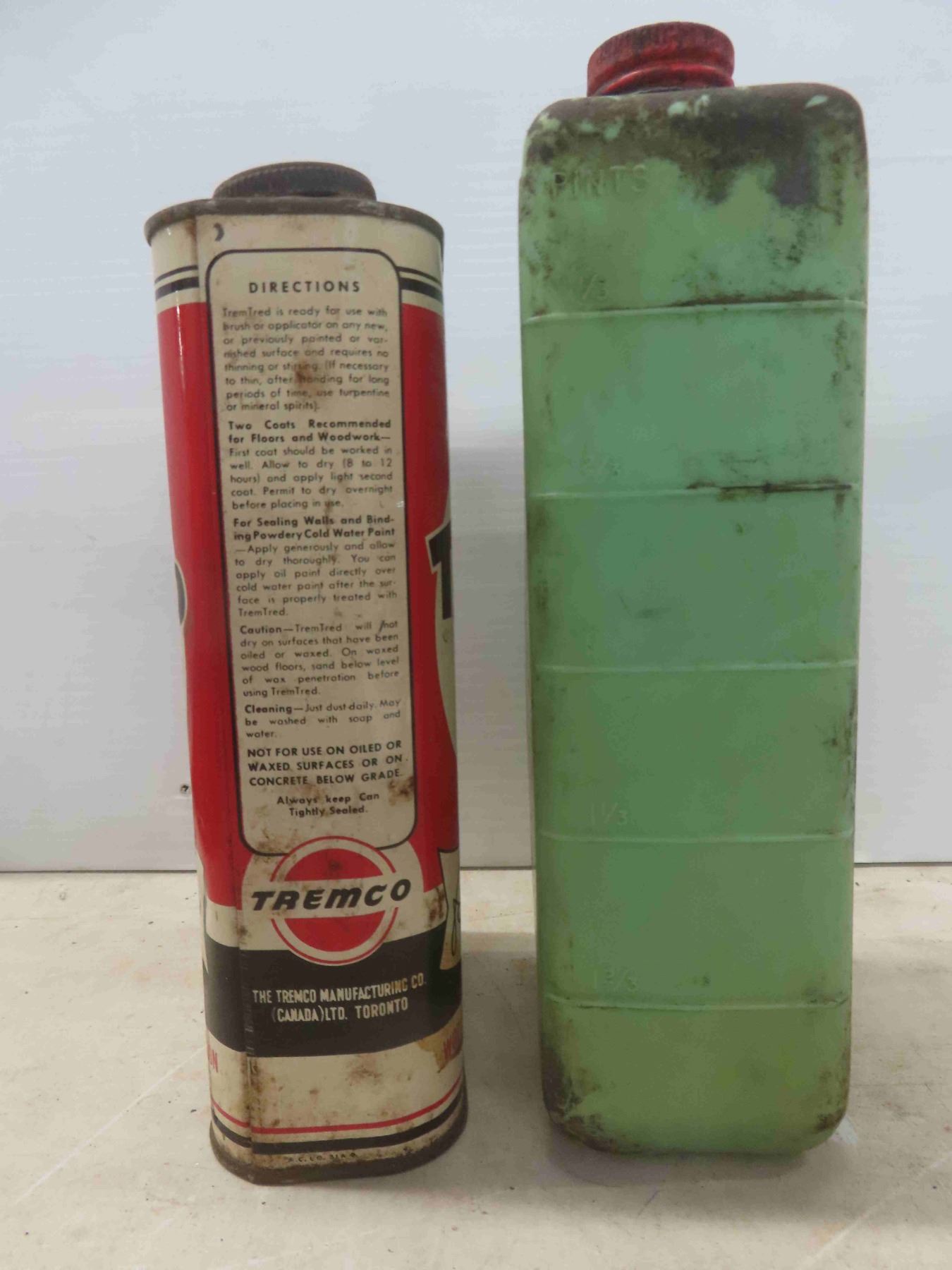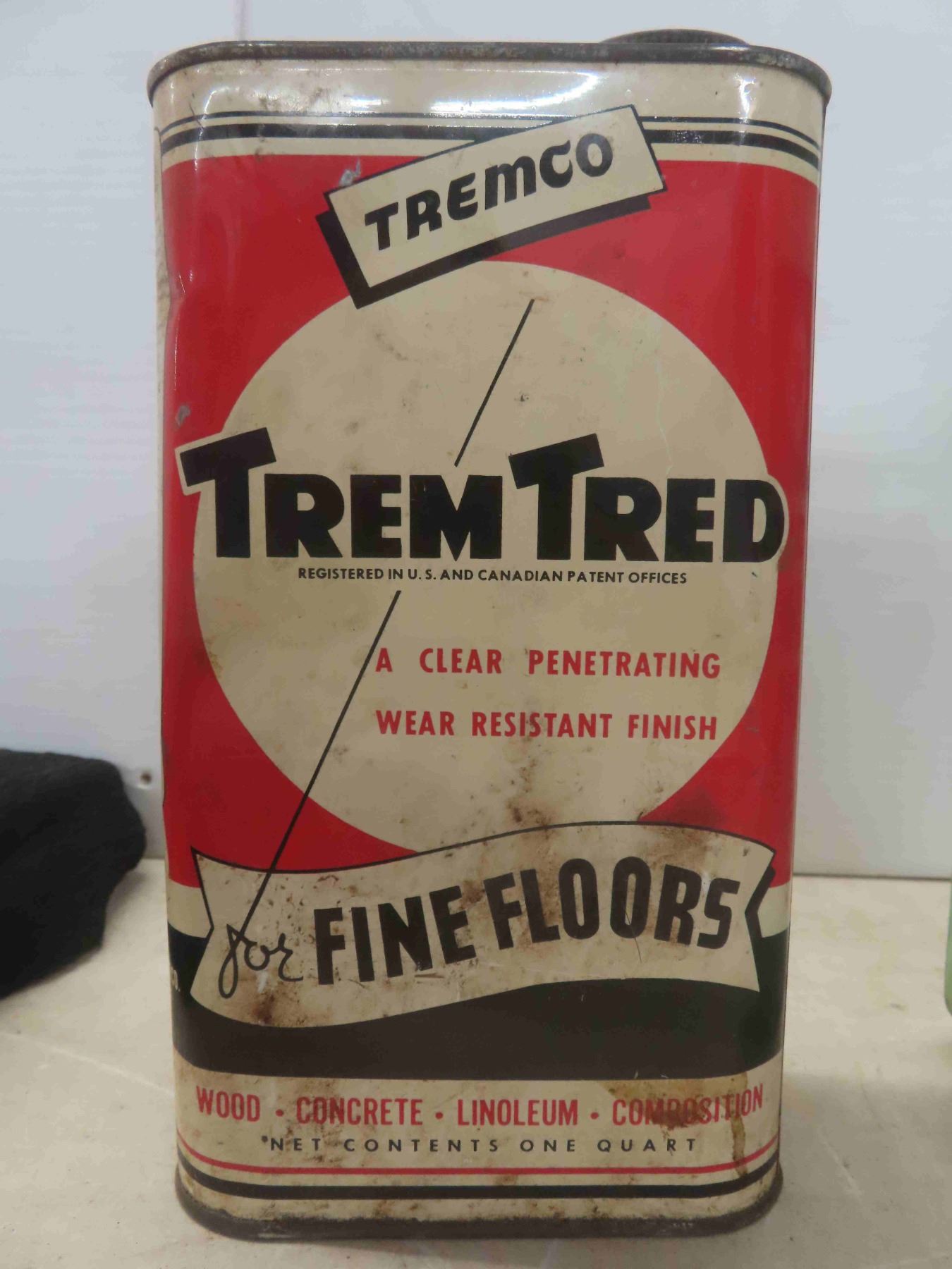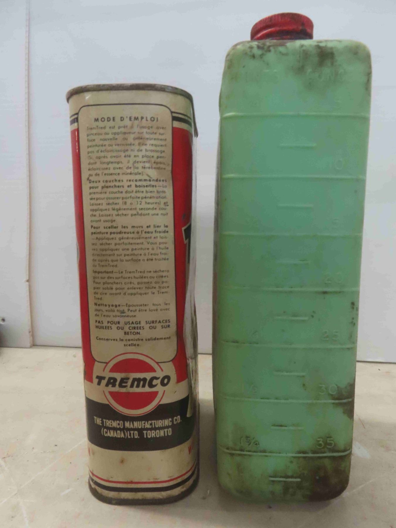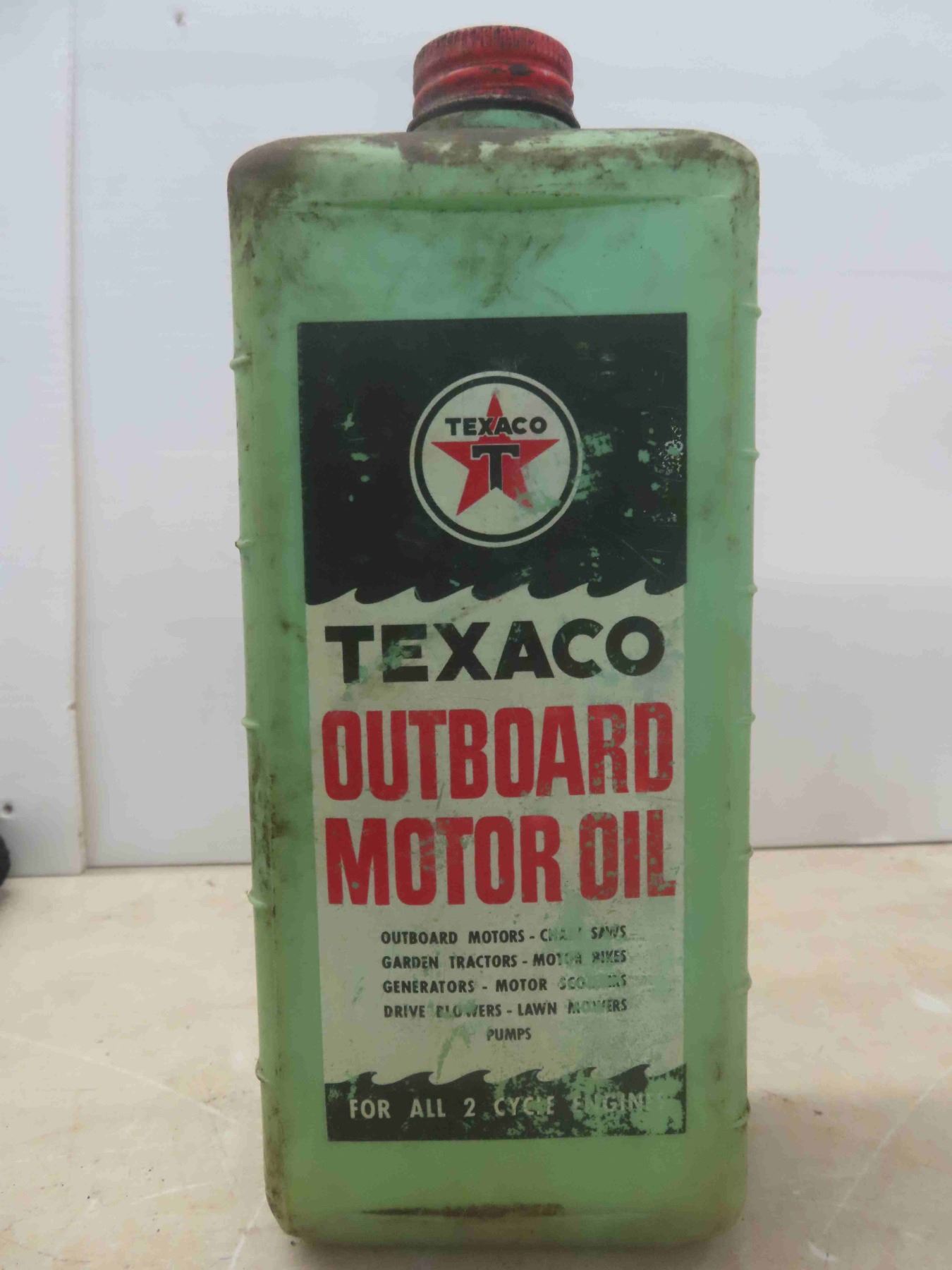 Tremco Trem-Tred Quart Can with Product, Texaco Outboard Motor Oil Plastic Quart Container
