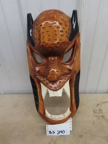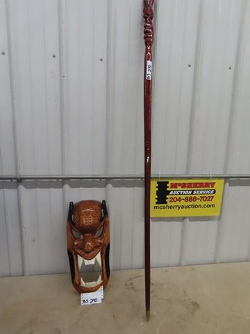 Tribal Wall Mask 9" x 19" , & Carved Walking Stick