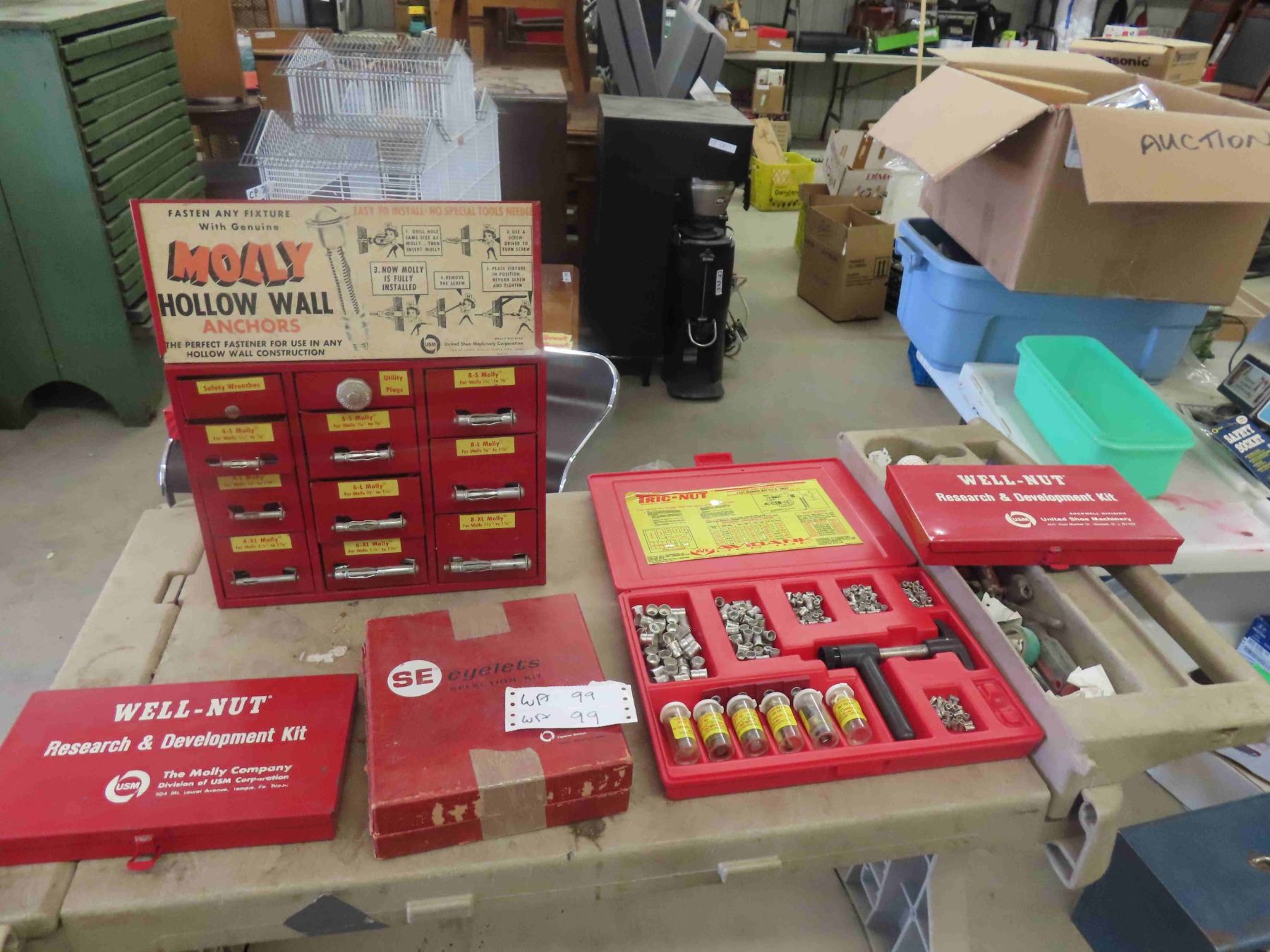 Tric-Nut Kit, 2 Well-Nut Kits, Eyelet Kit, Molly Hollow Wall Anchors Cabinet