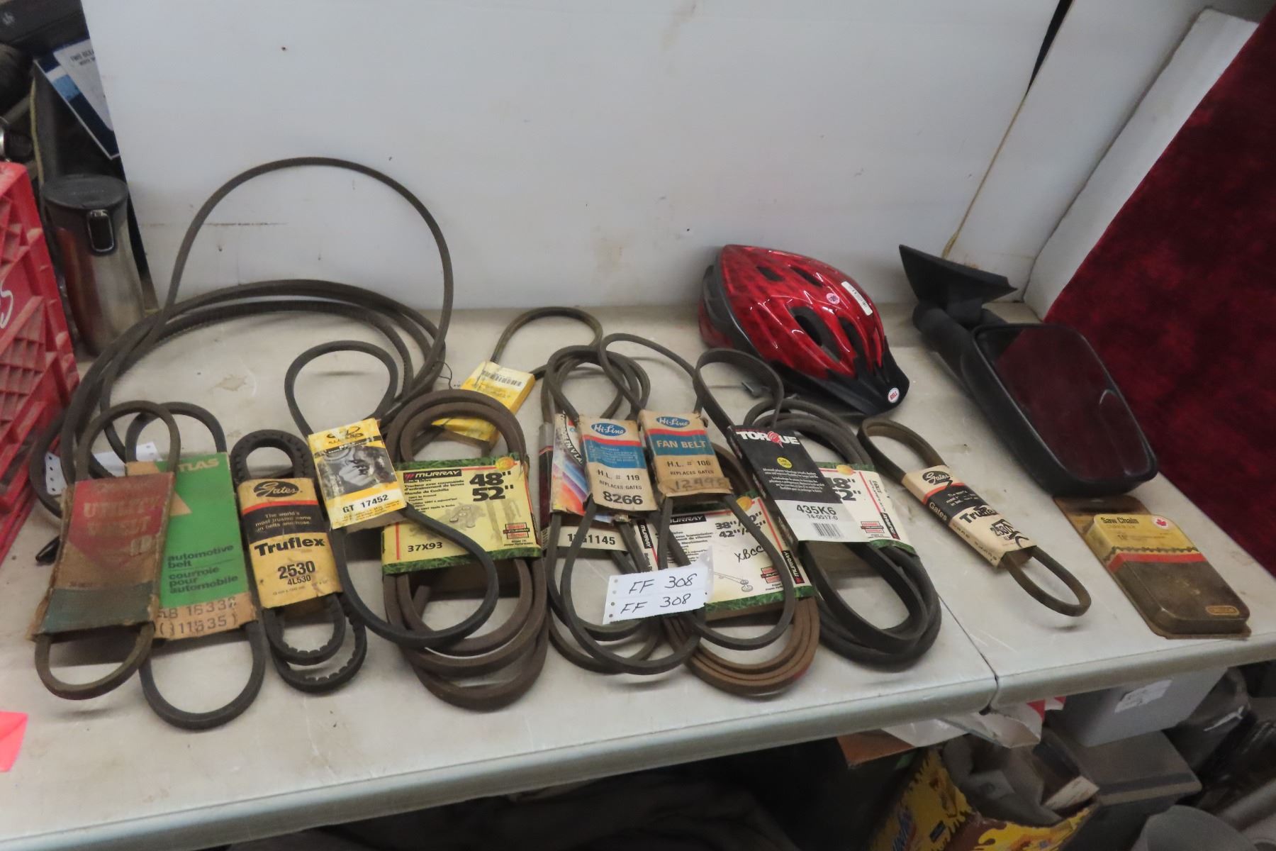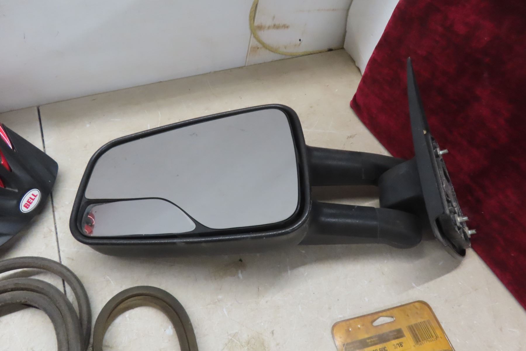 Truck Mirror Left Side, New Old Stock Belts + Saw Chain 16", Bicycle Helmet