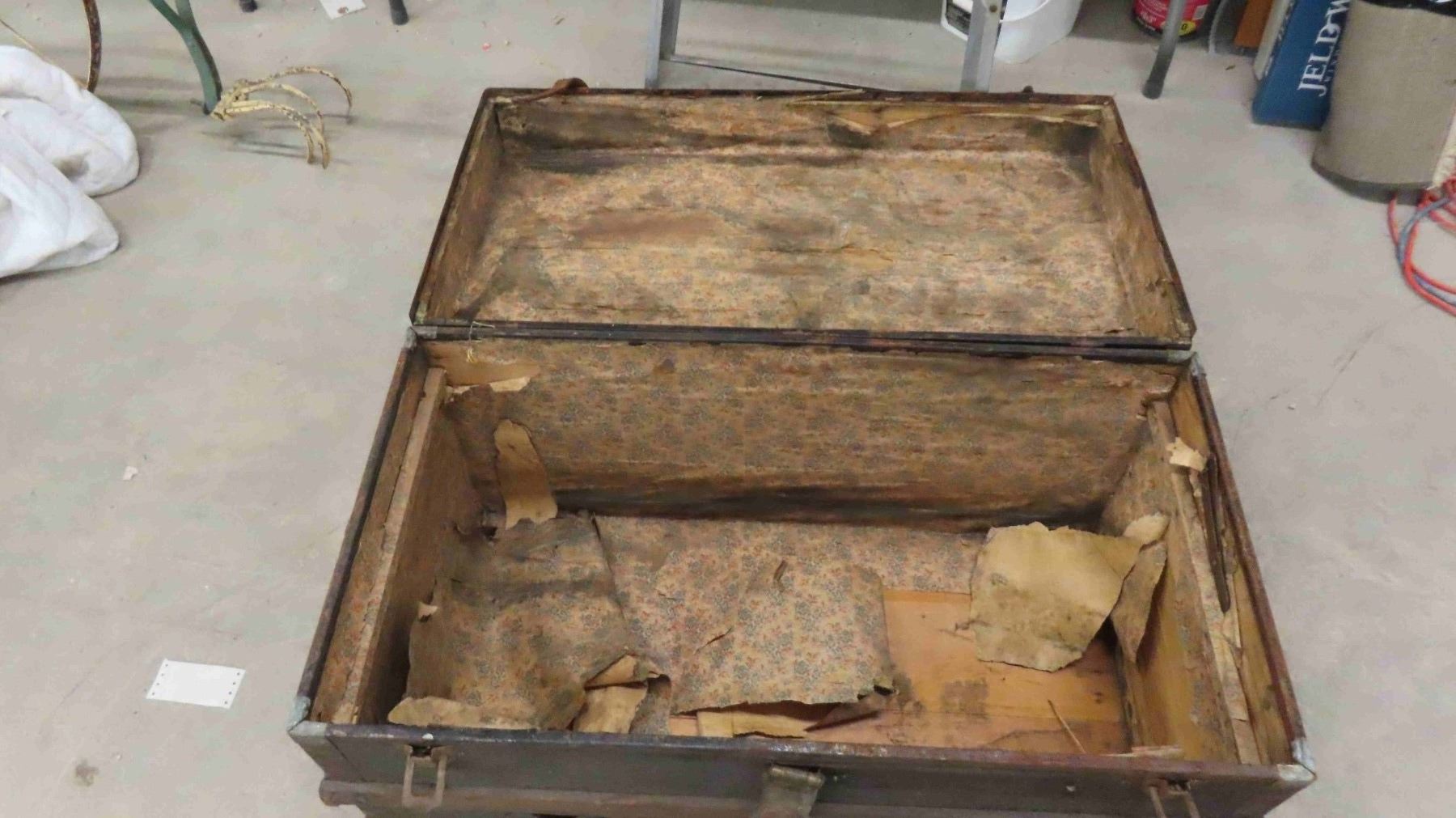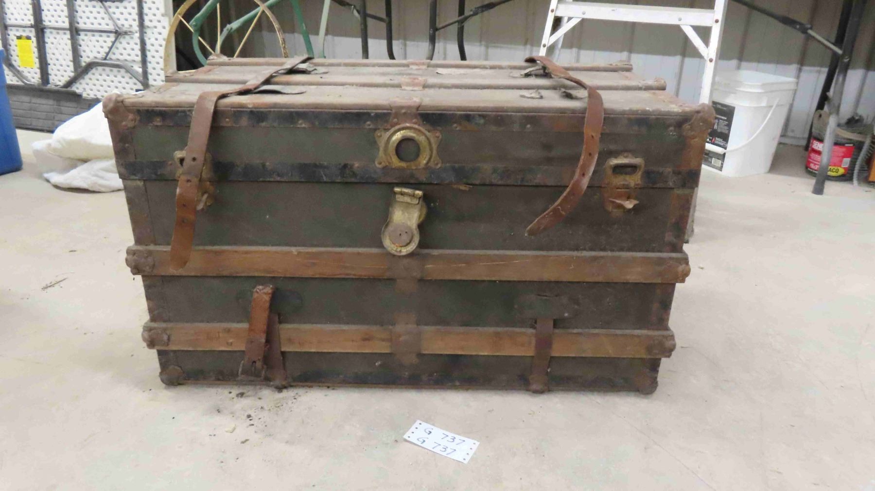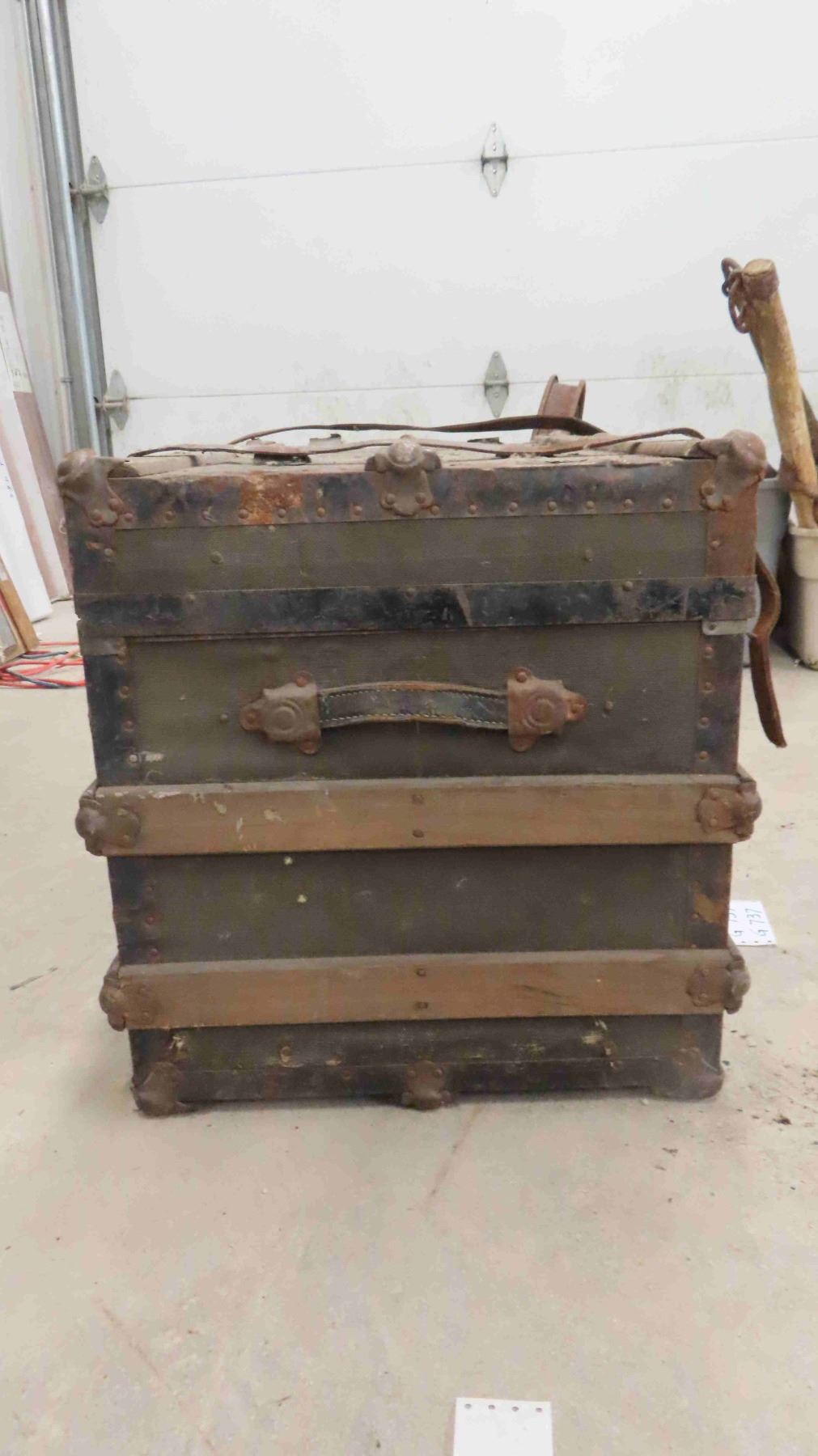 Trunk with Wooden Trim + Leather Straps 18" x 20" x 34"