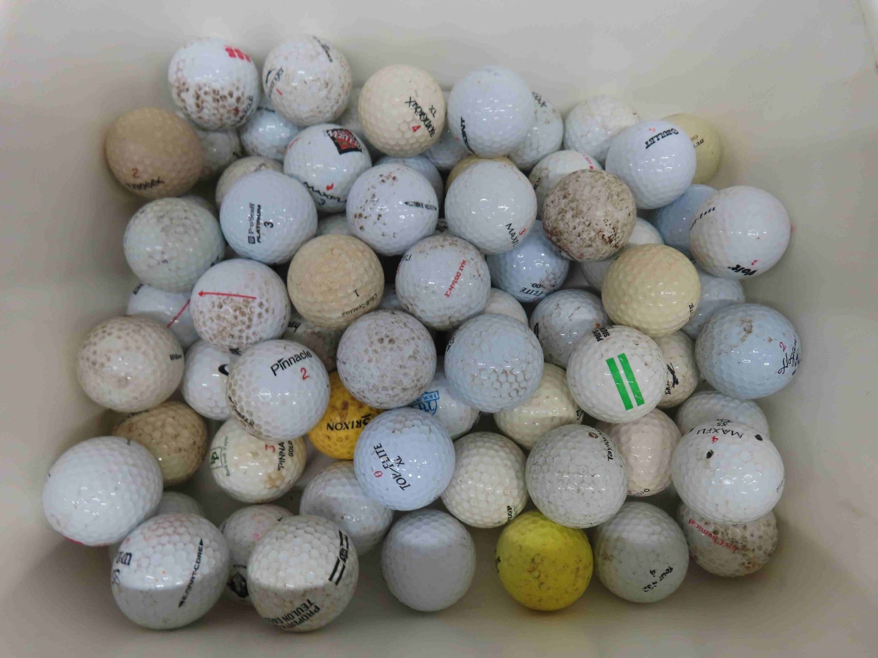 Tub of Assorted Golf Balls, 2 Wedges & 1 Putter , Fishing Rod
