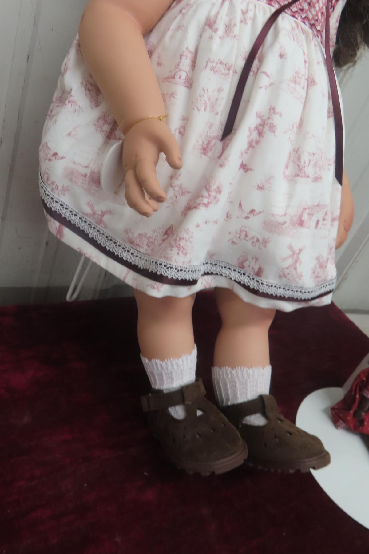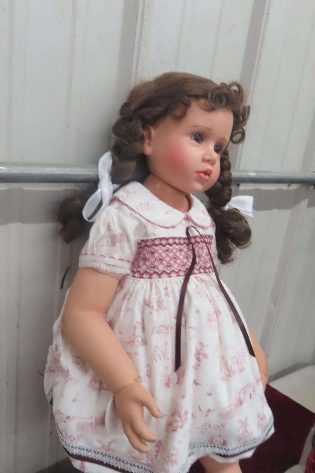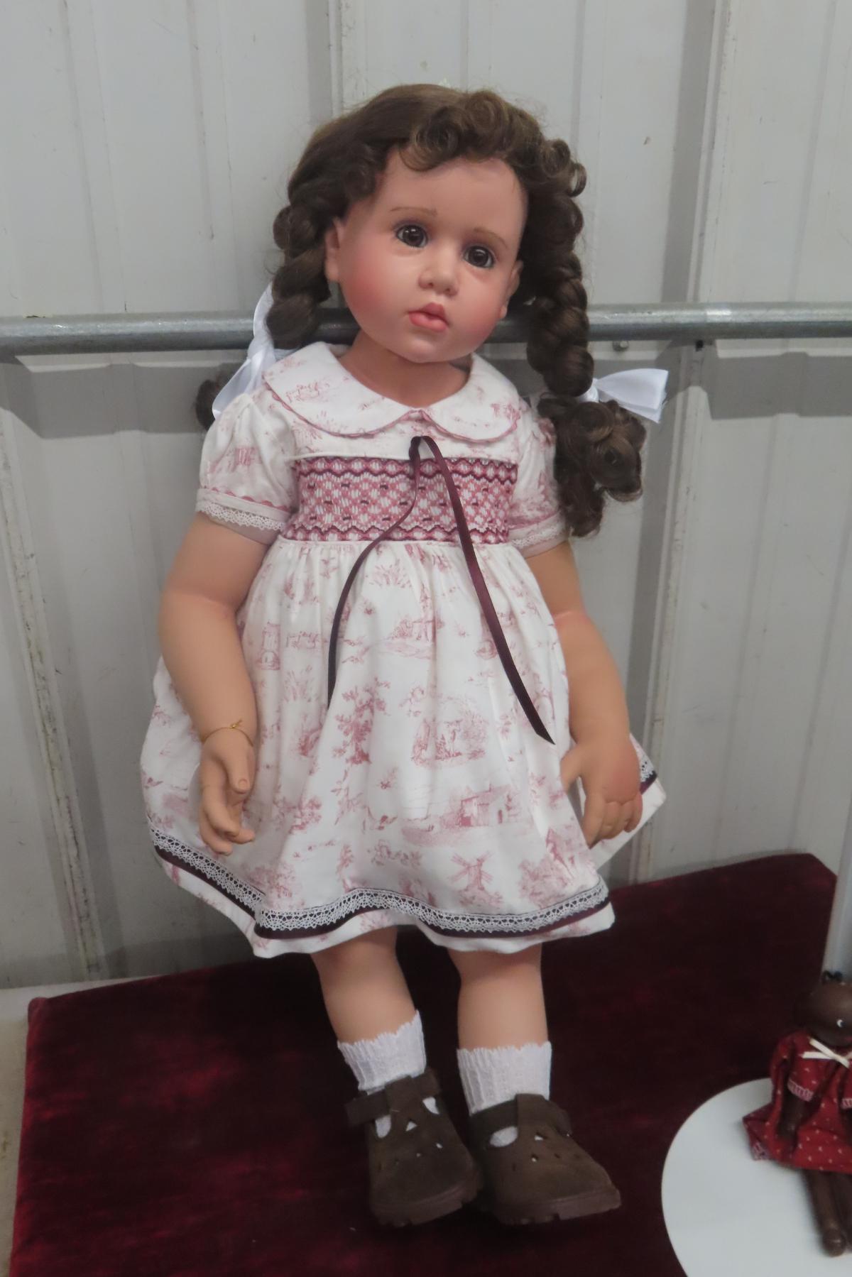 Turner Dolls “Iya” One-of-a-Kind Vinyl Doll, Sculpted by Peggy Dey and Produced in 2019 by Virginia Ehrlich Turner. Brown Hair, Brown Eyes, Wearing Smocked White Burgundy Print Outfit. Includes Original Box and Certificate. Stands 20" Tall.