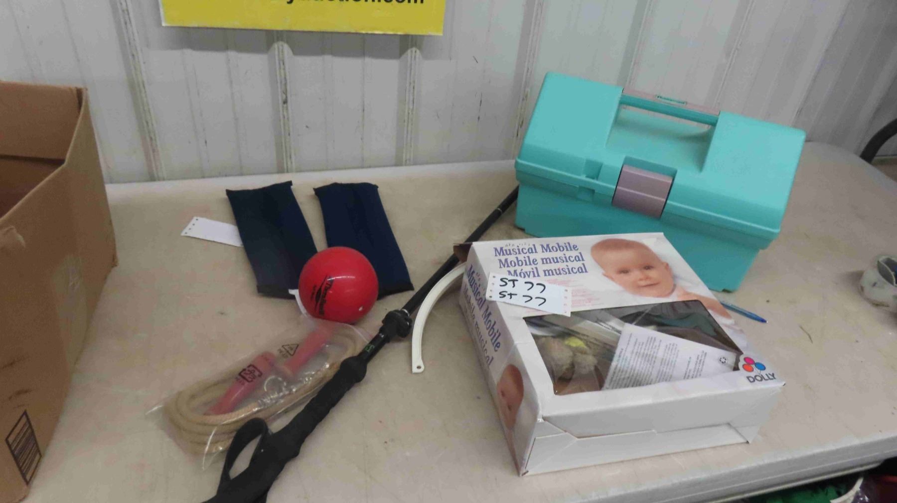 Turquoise Rubbermaid Lunch Kit , Baby Musical Mobile , Ankle Weights , Skip Rope