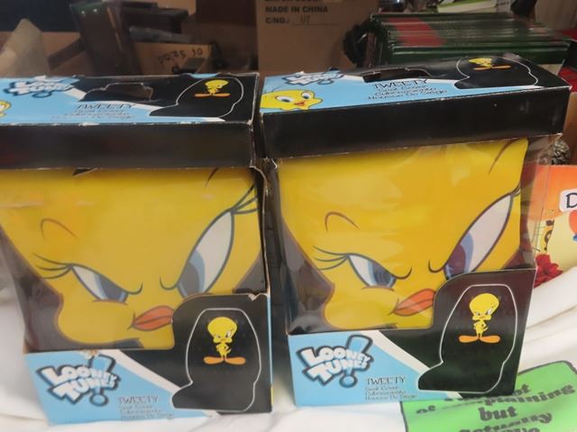 Tweety Seat Covers, A& W Plush + Puppet, Garbage Can, Charlie Brown Bedding