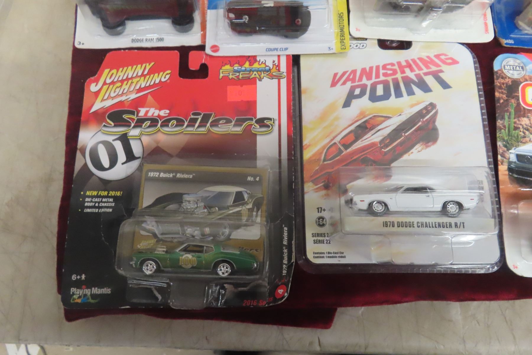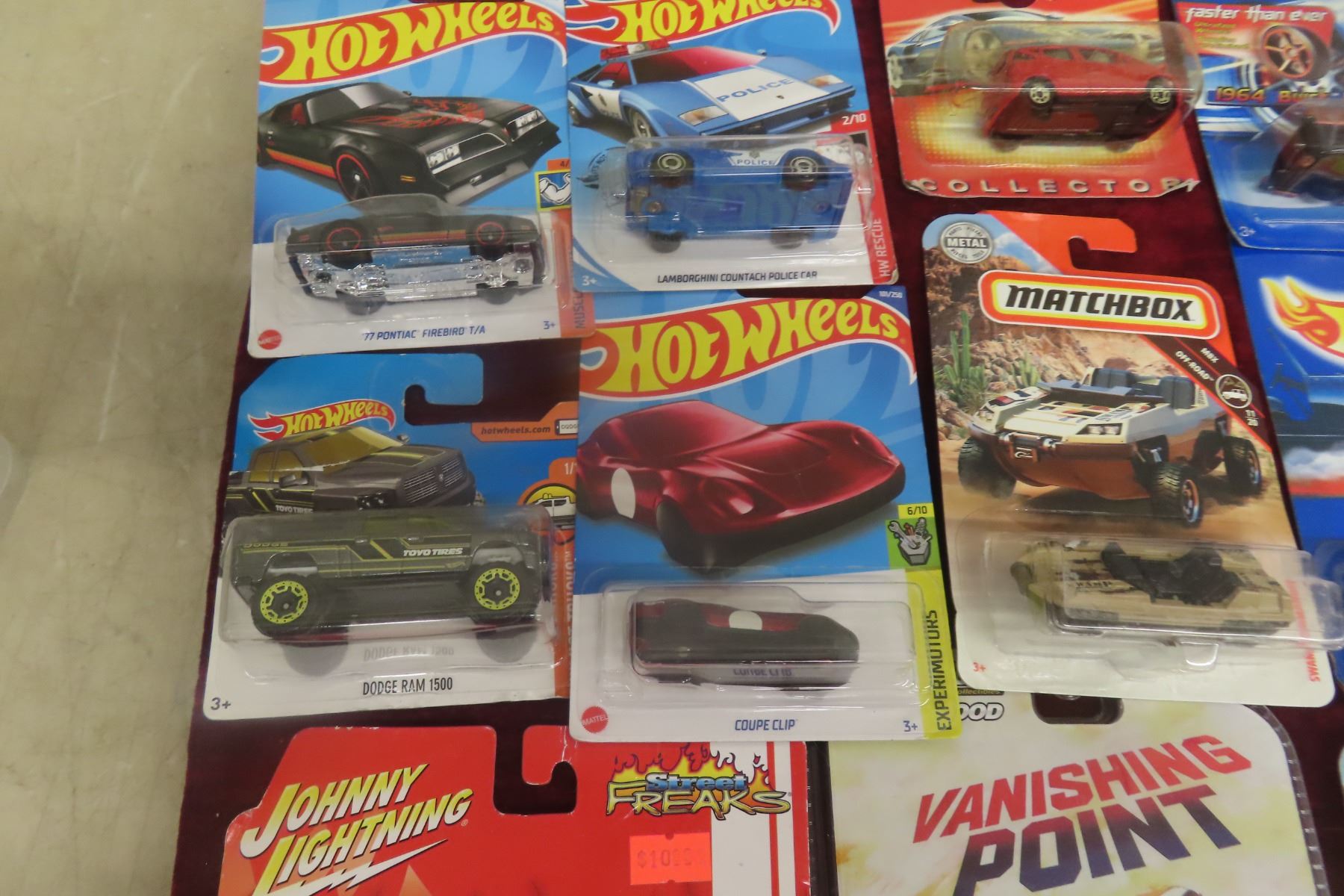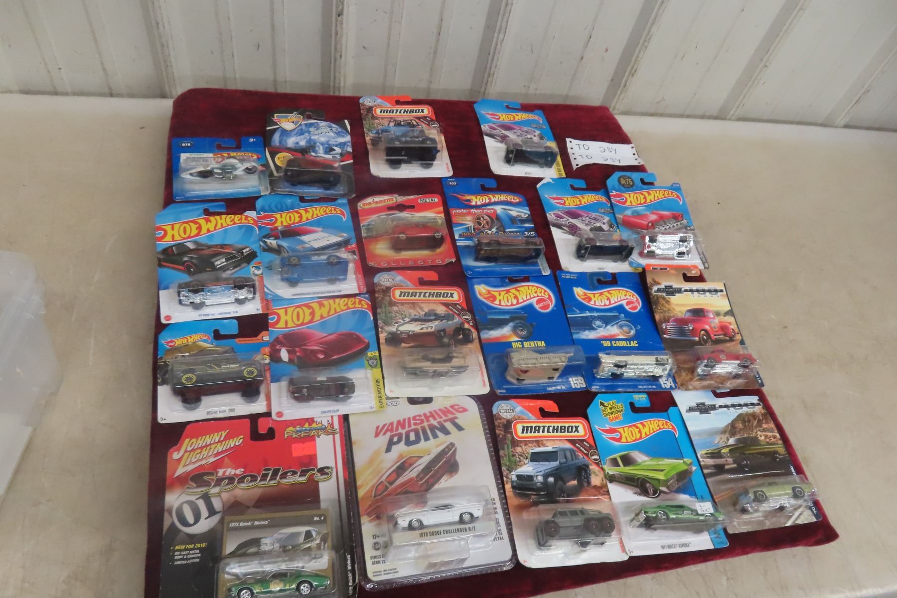 Twenty-One Die Cast Cars 1/64 Scale in Packages: Hot Wheels, Matchbox, and Johnny Lightning