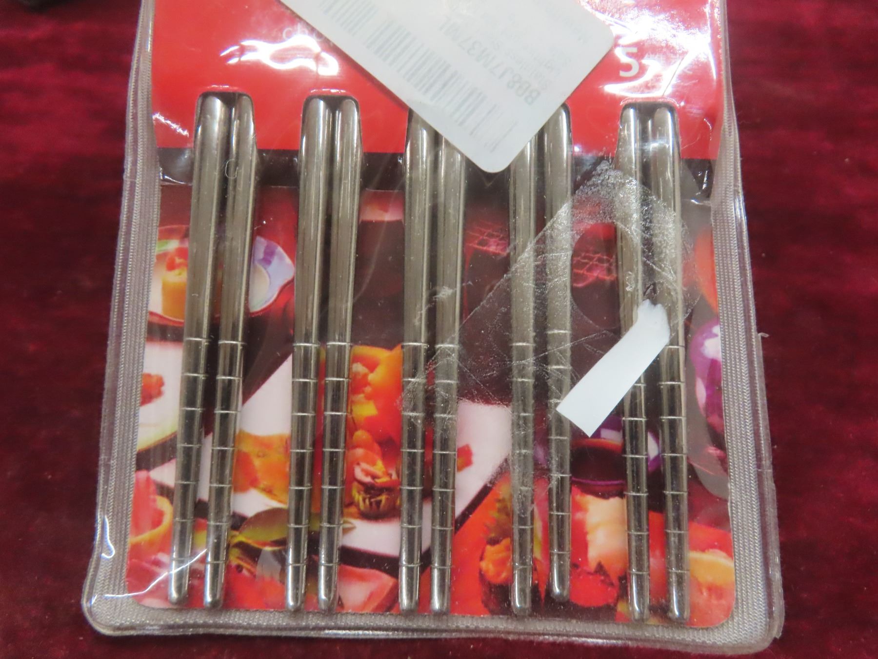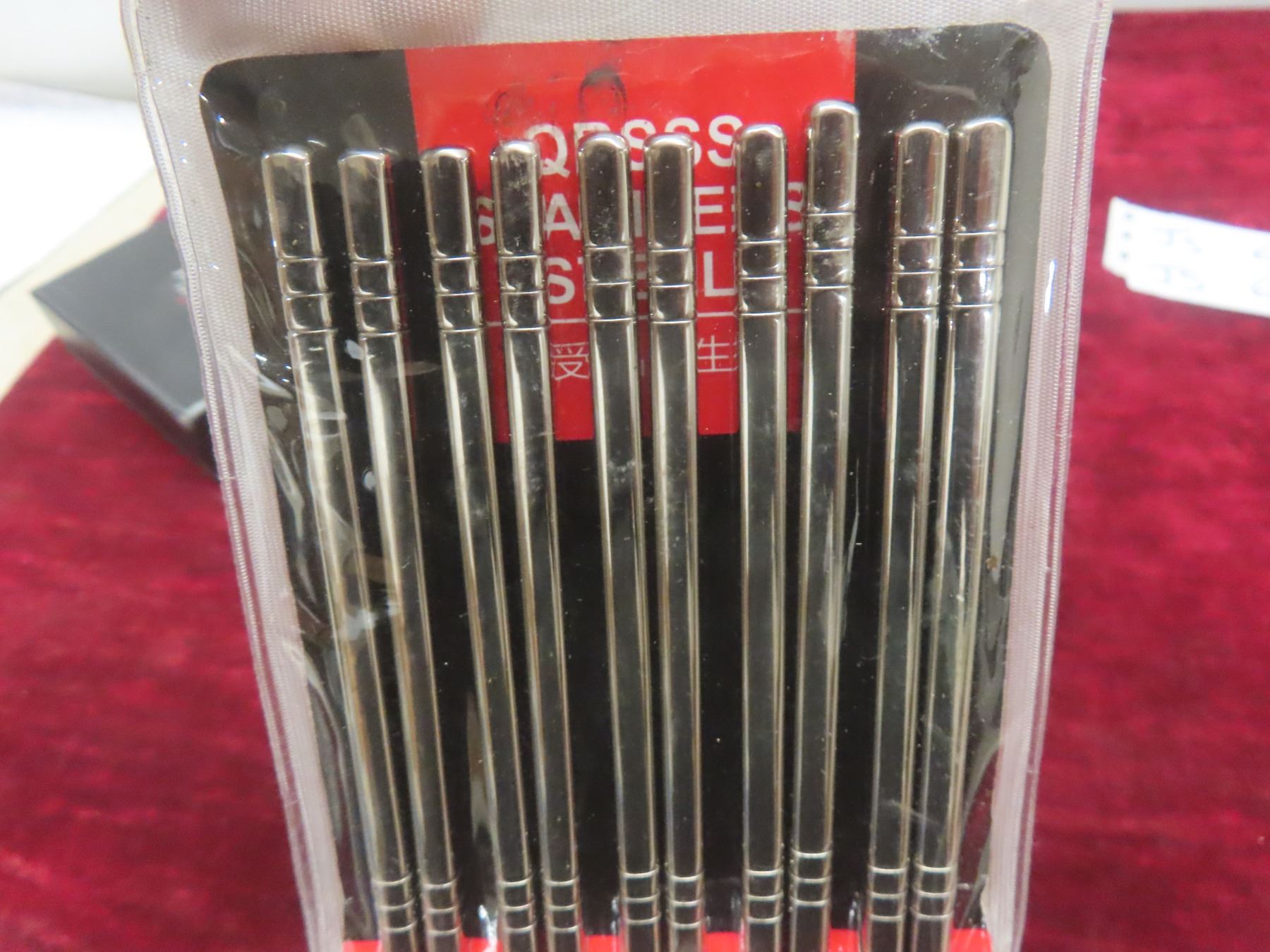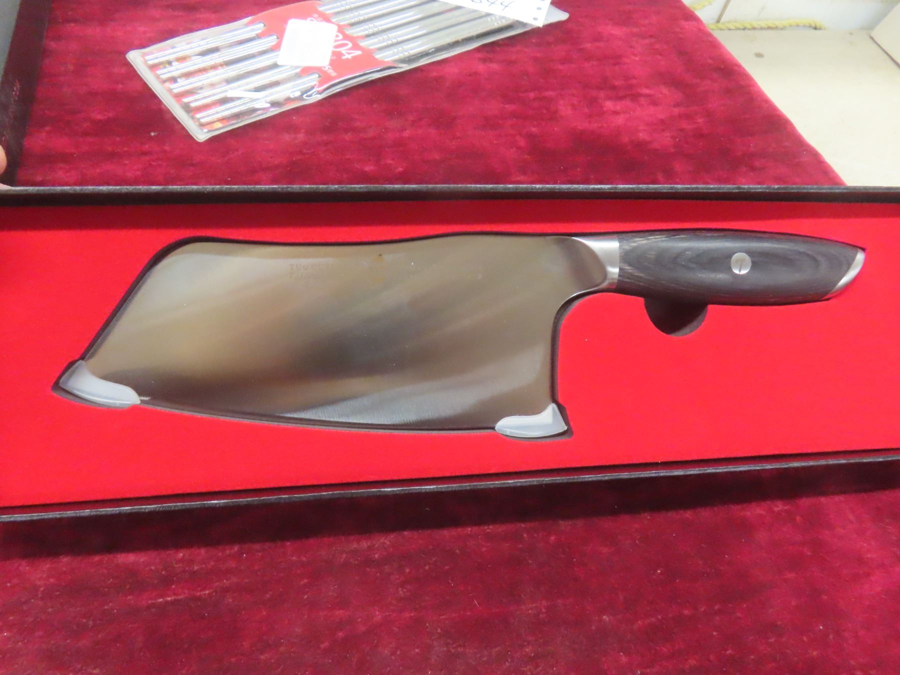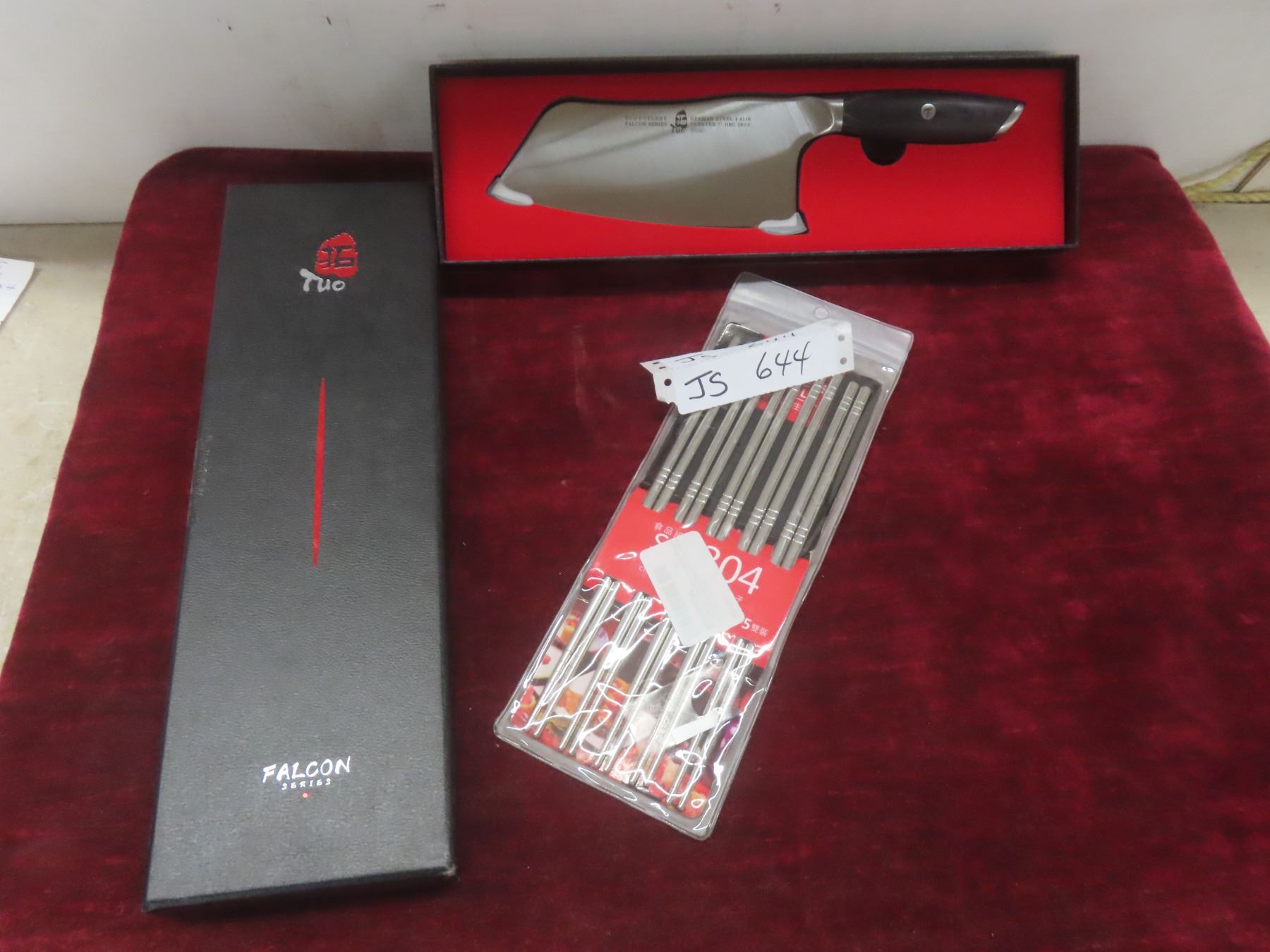 Two Cutlery 7" Cleaver (New) And A Set Of Metal Chopsticks.