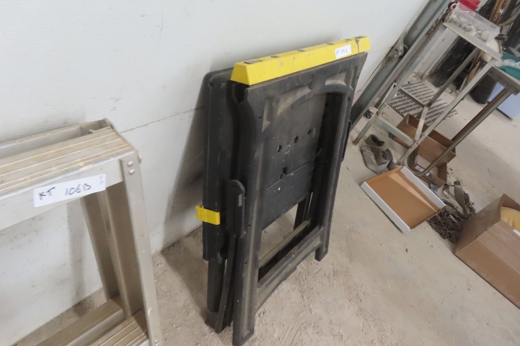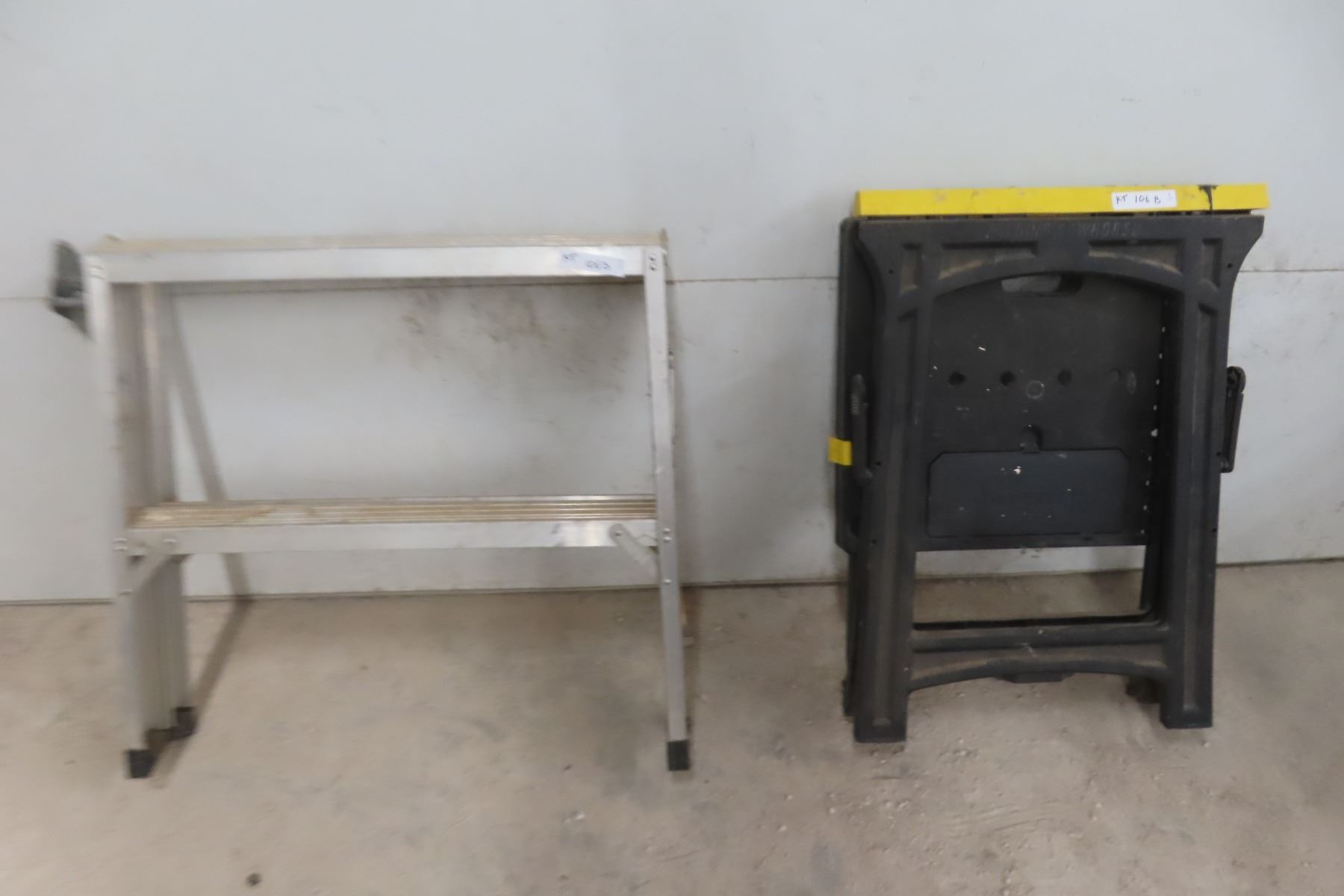 Two Folding Saw Horses: One Poly and One Aluminum