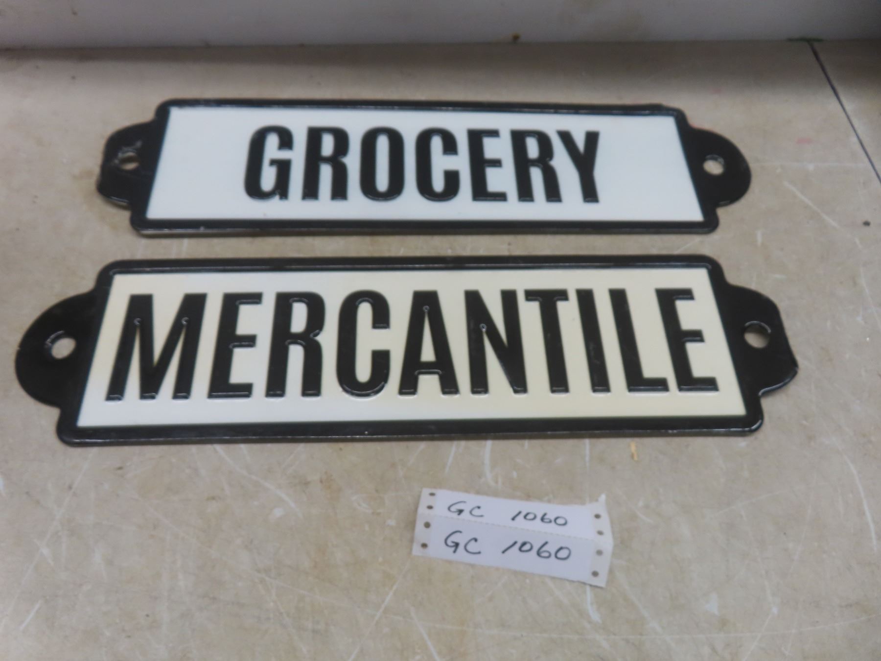 Two Metal Signs: Grocery & Mercantile 5 1/4" x 20"