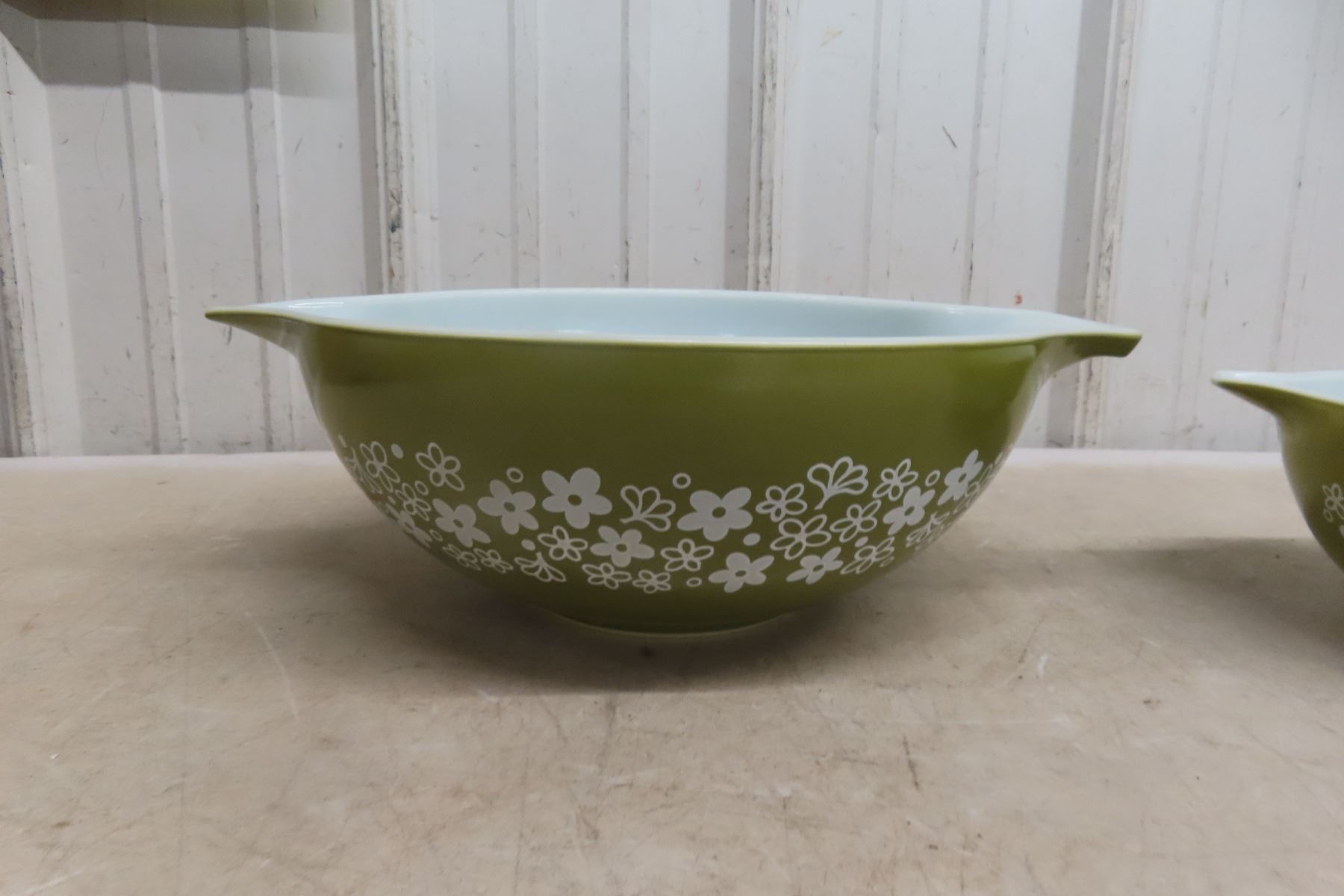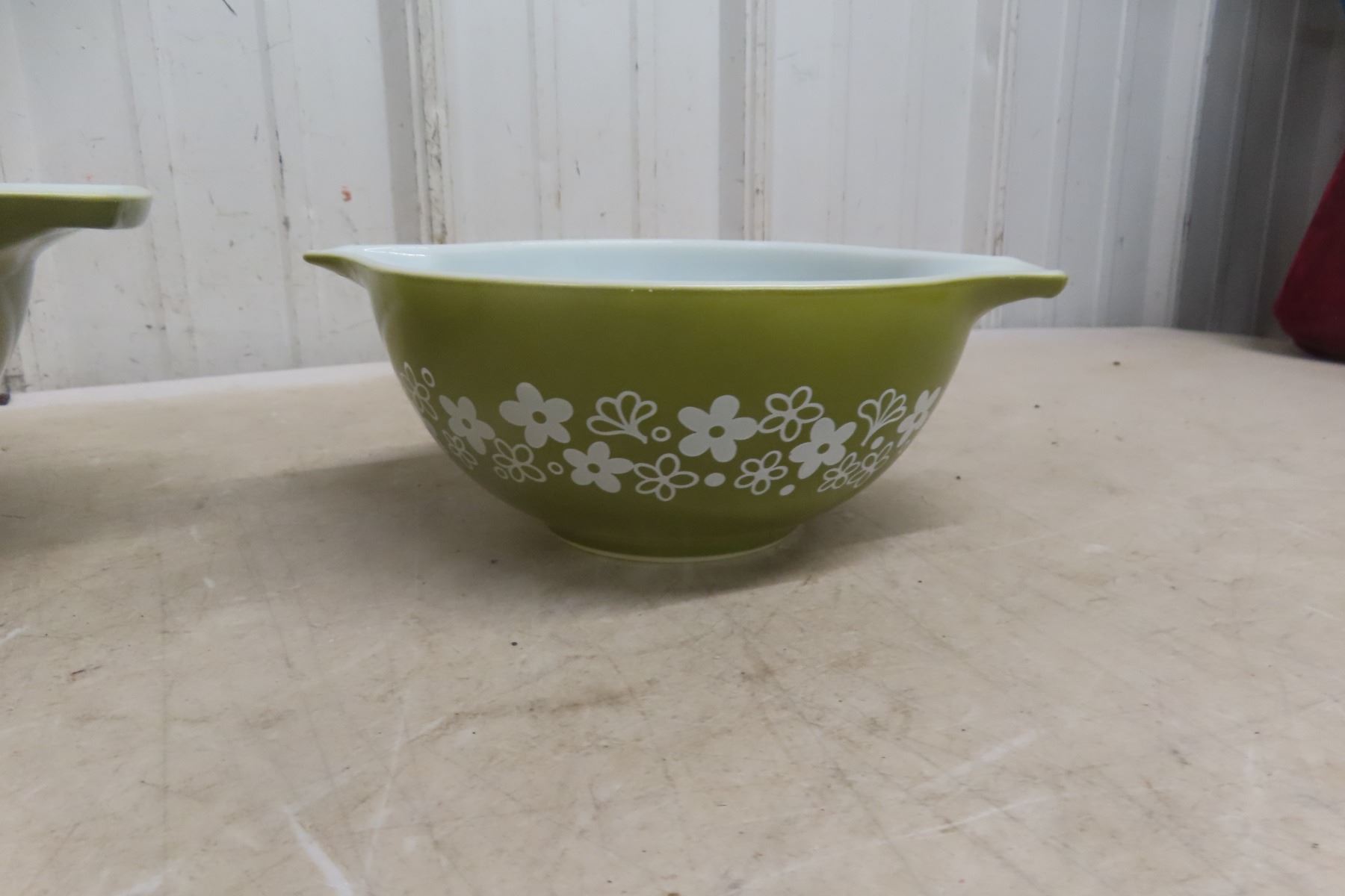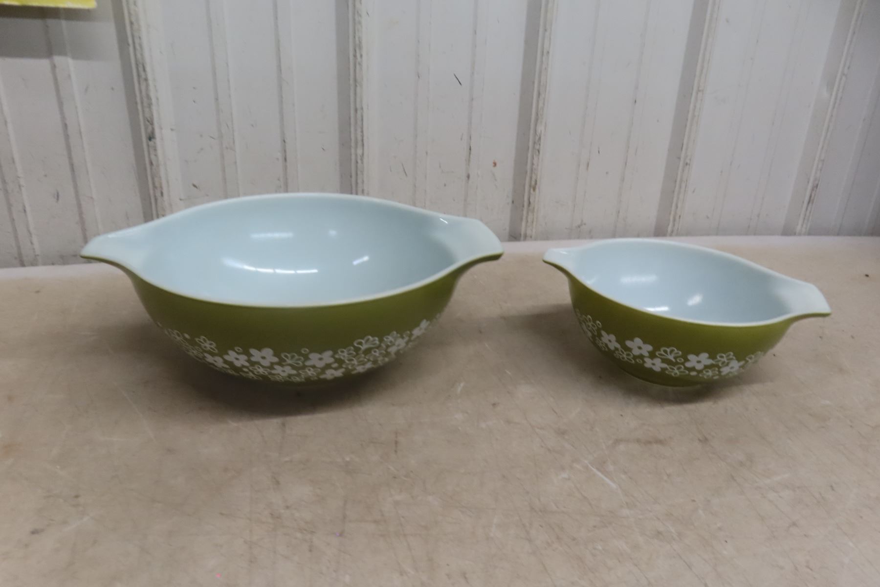 Two Piece Set of Vintage Pyrex Green/Crazy Daisy Mixing Bowls