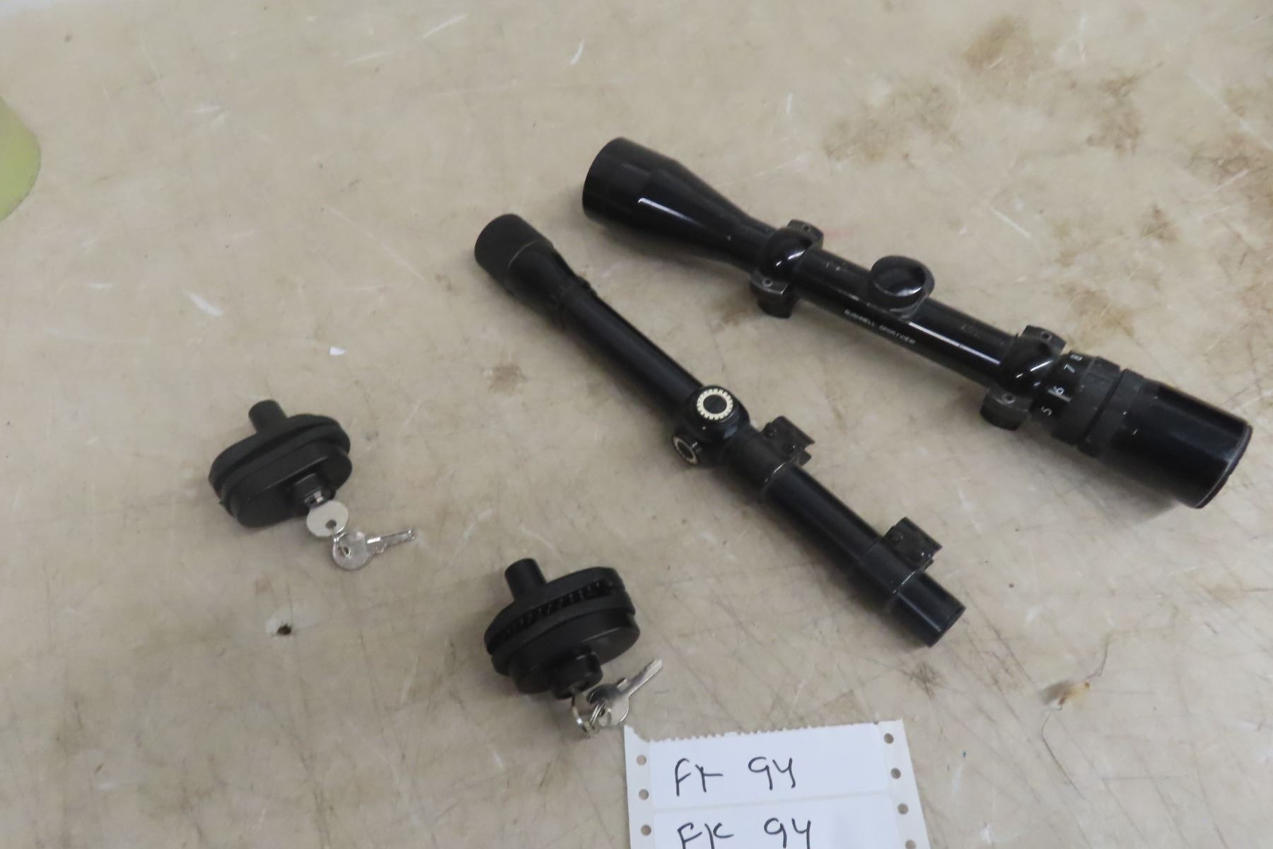 Two Rifle Scopes Including Bushnell Sportview 3 x 9 and Weaver .22 Scope, Plus Two Keyed Trigger Locks