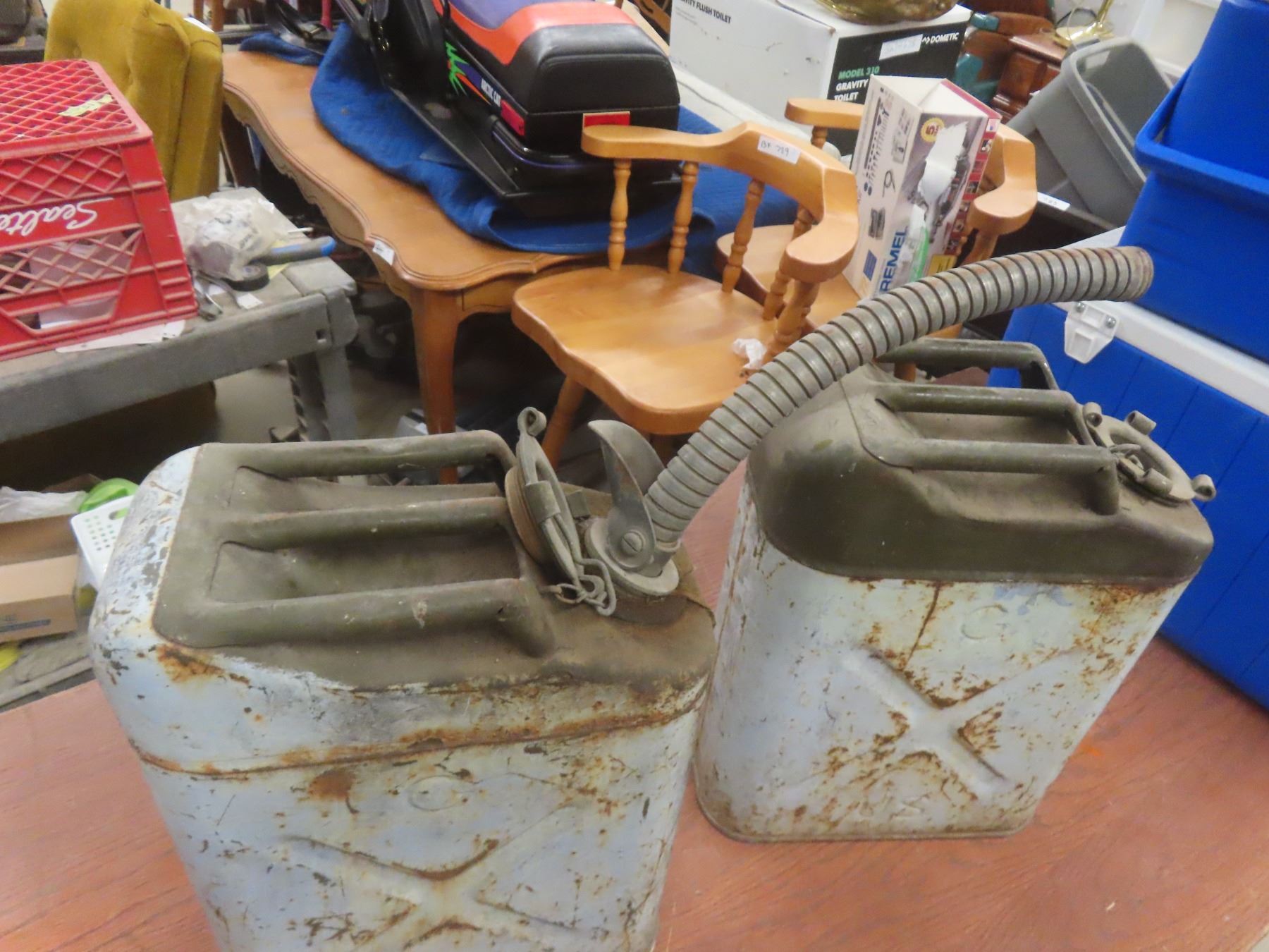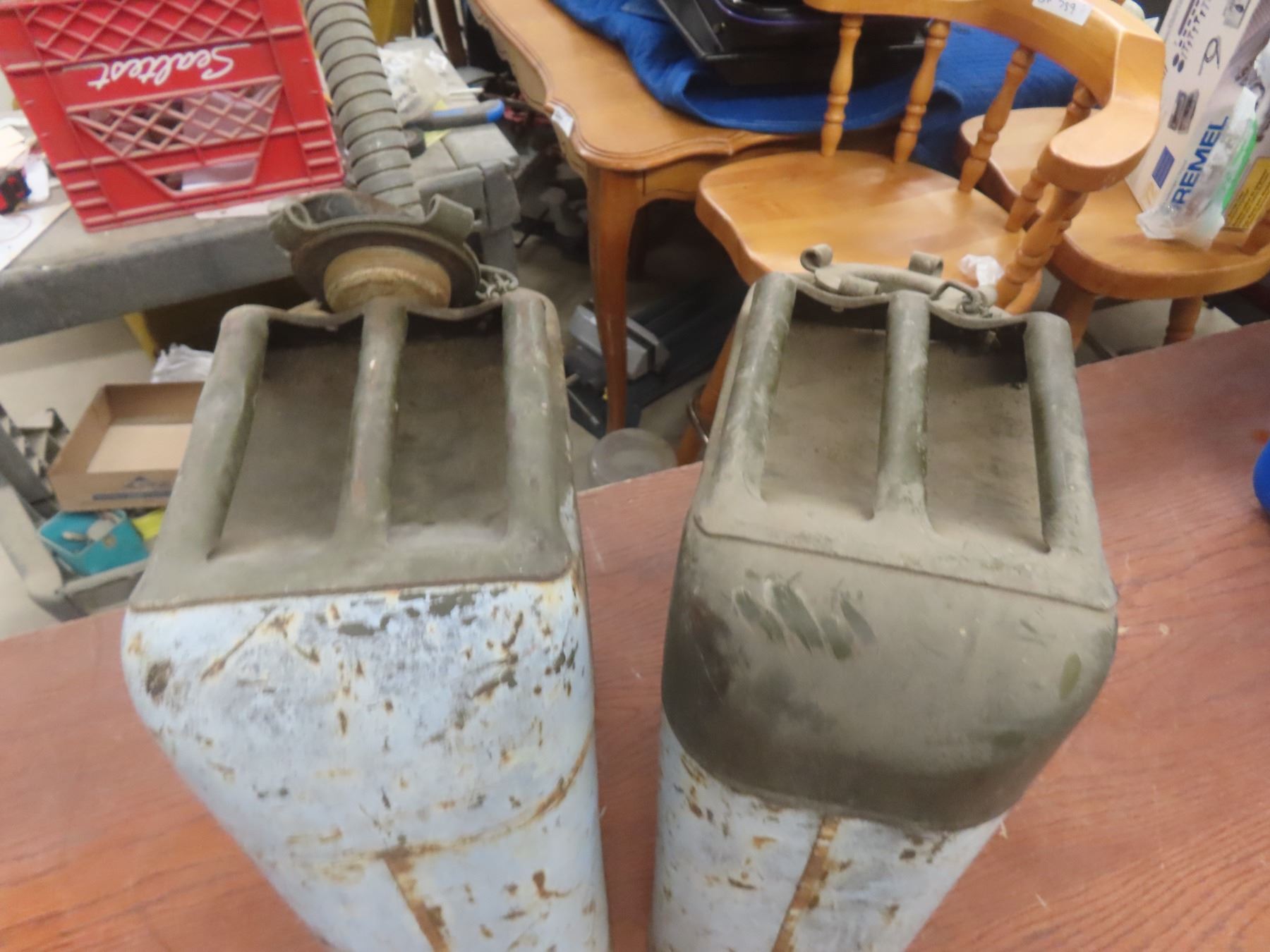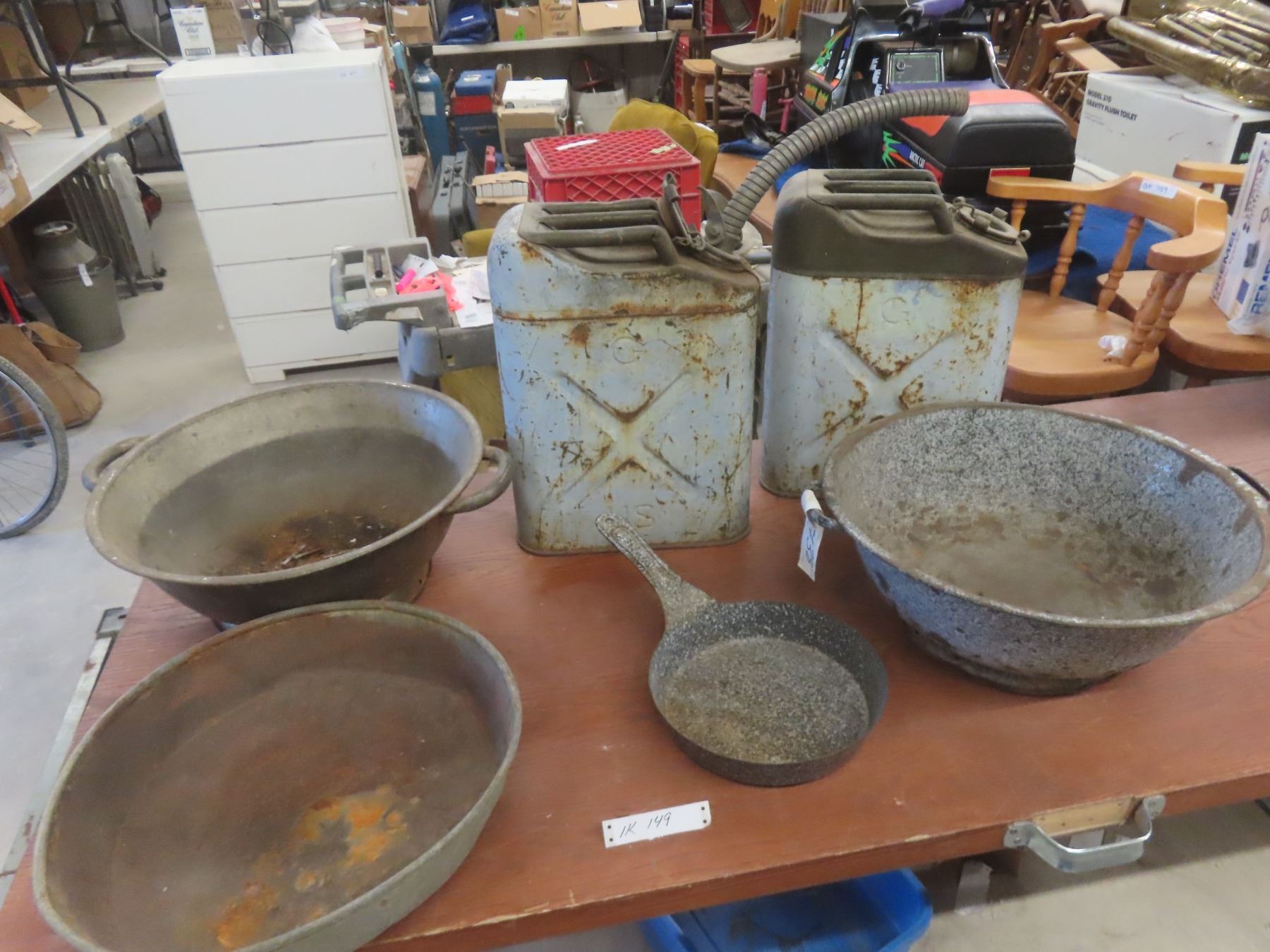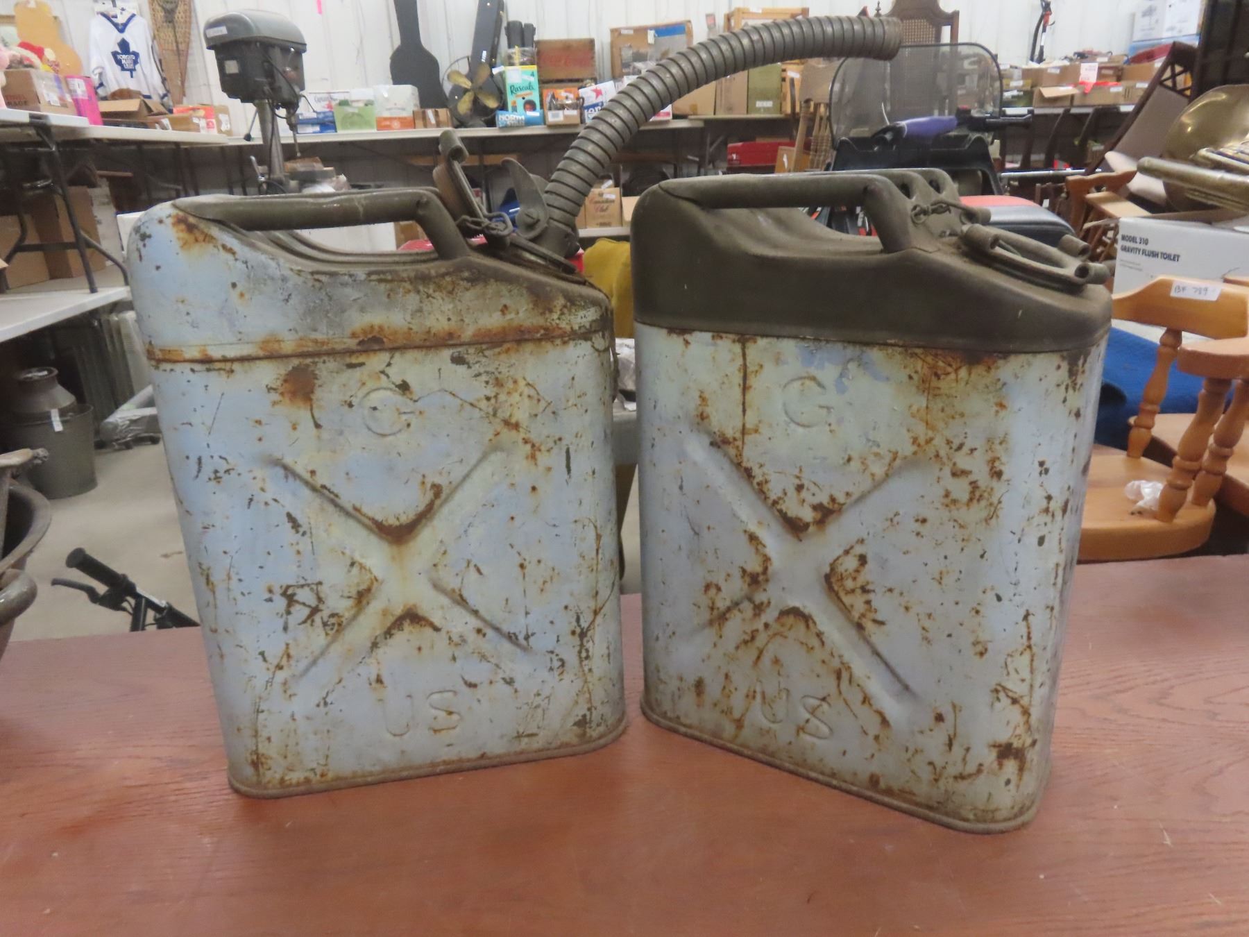 Two U.S. Metal Gas Containers, Two Vintage Colanders, and More