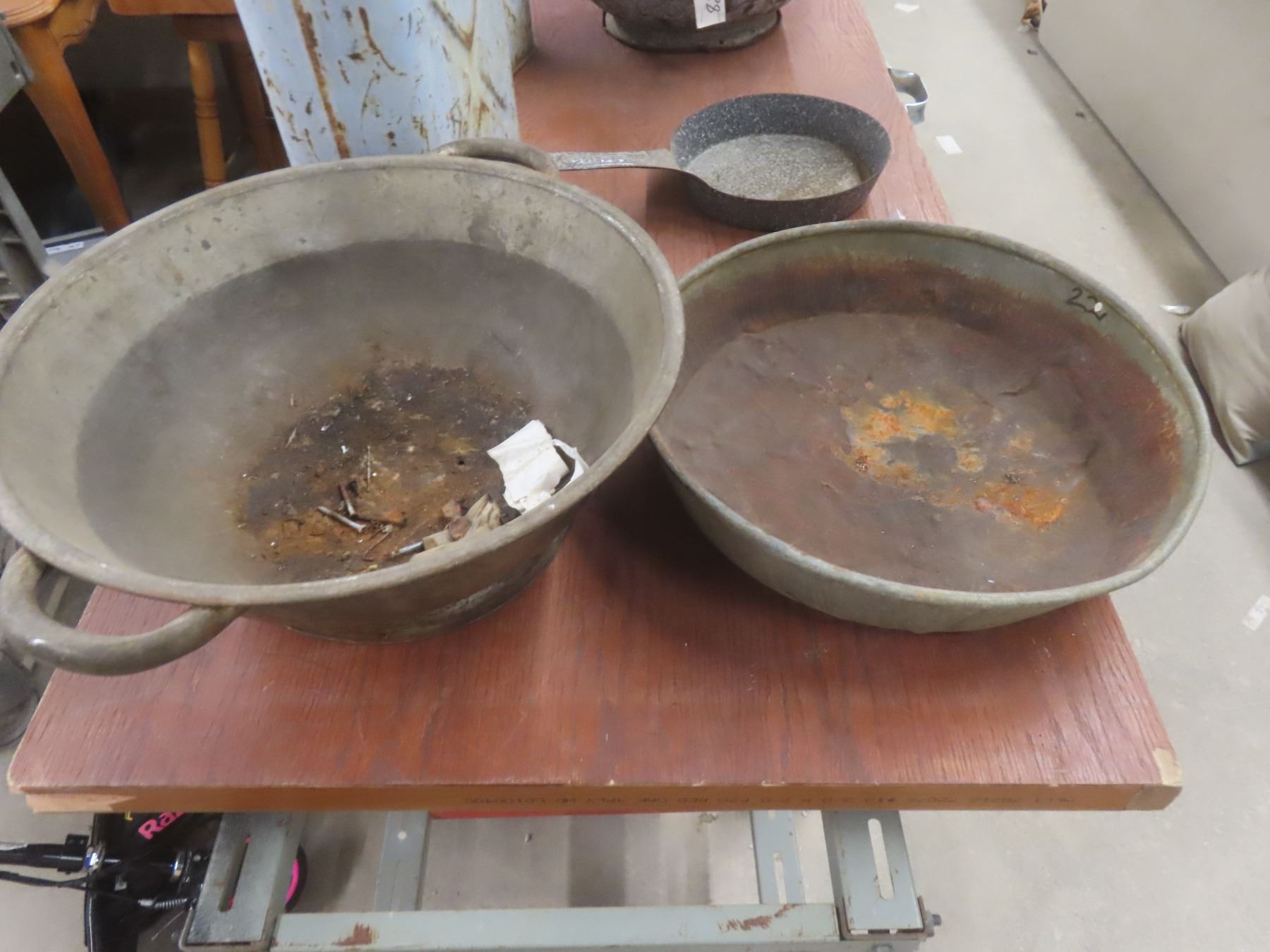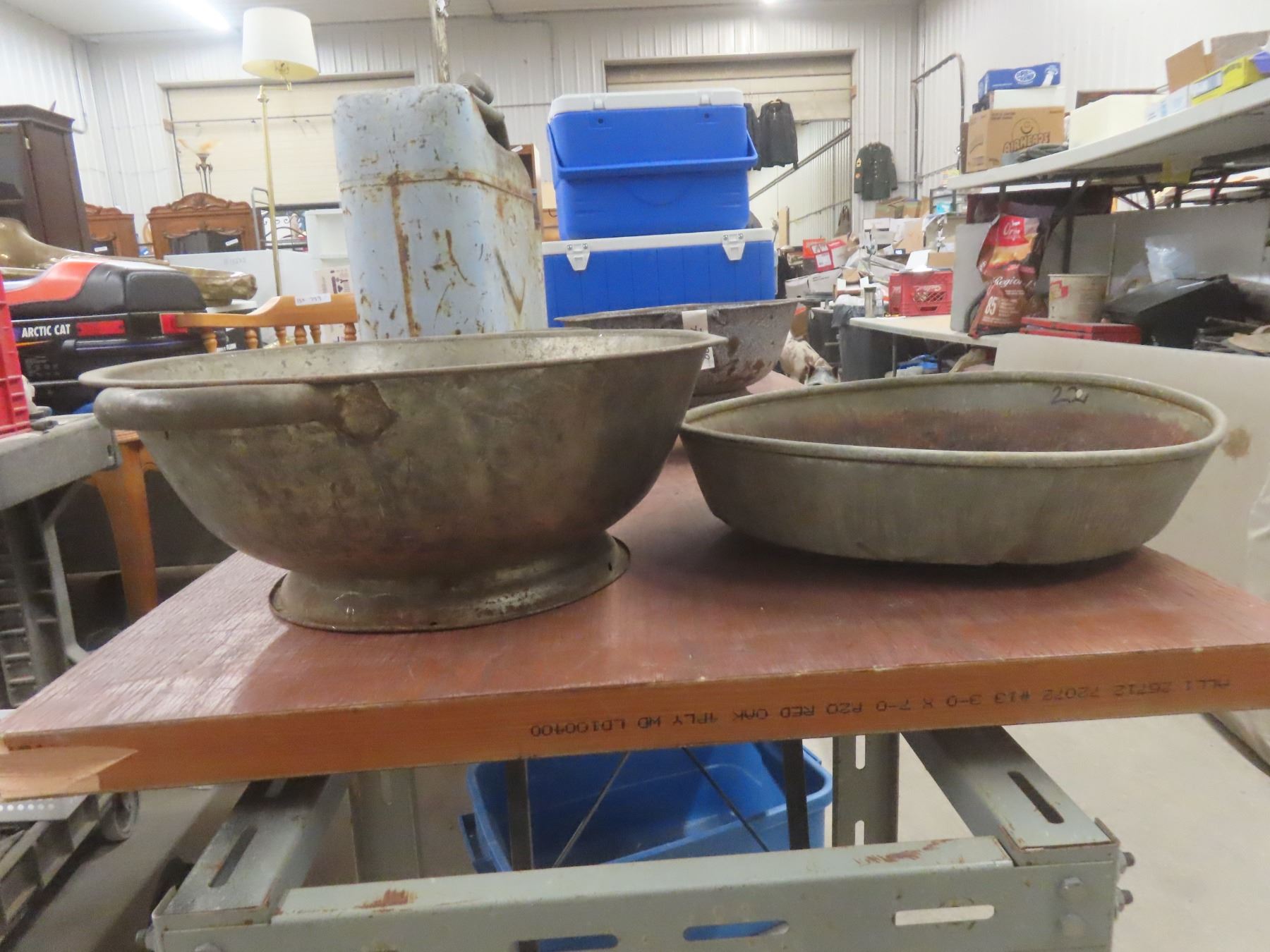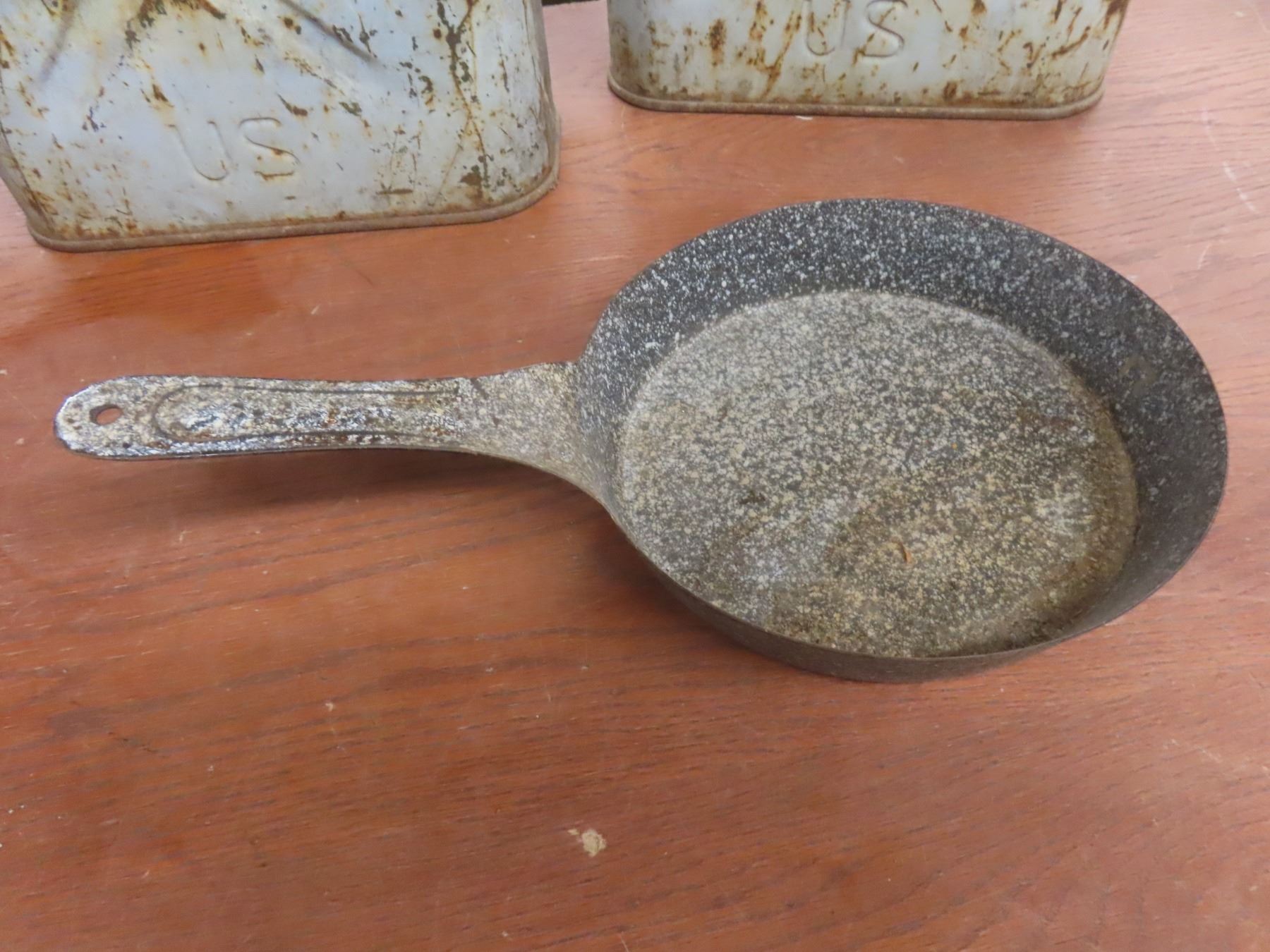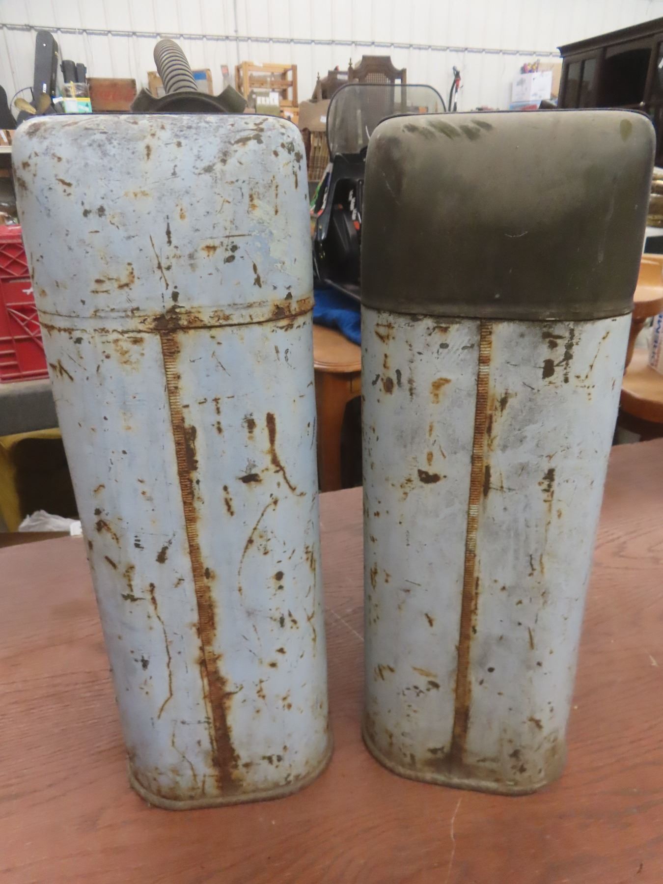 Two U.S. Metal Gas Containers, Two Vintage Colanders, and More