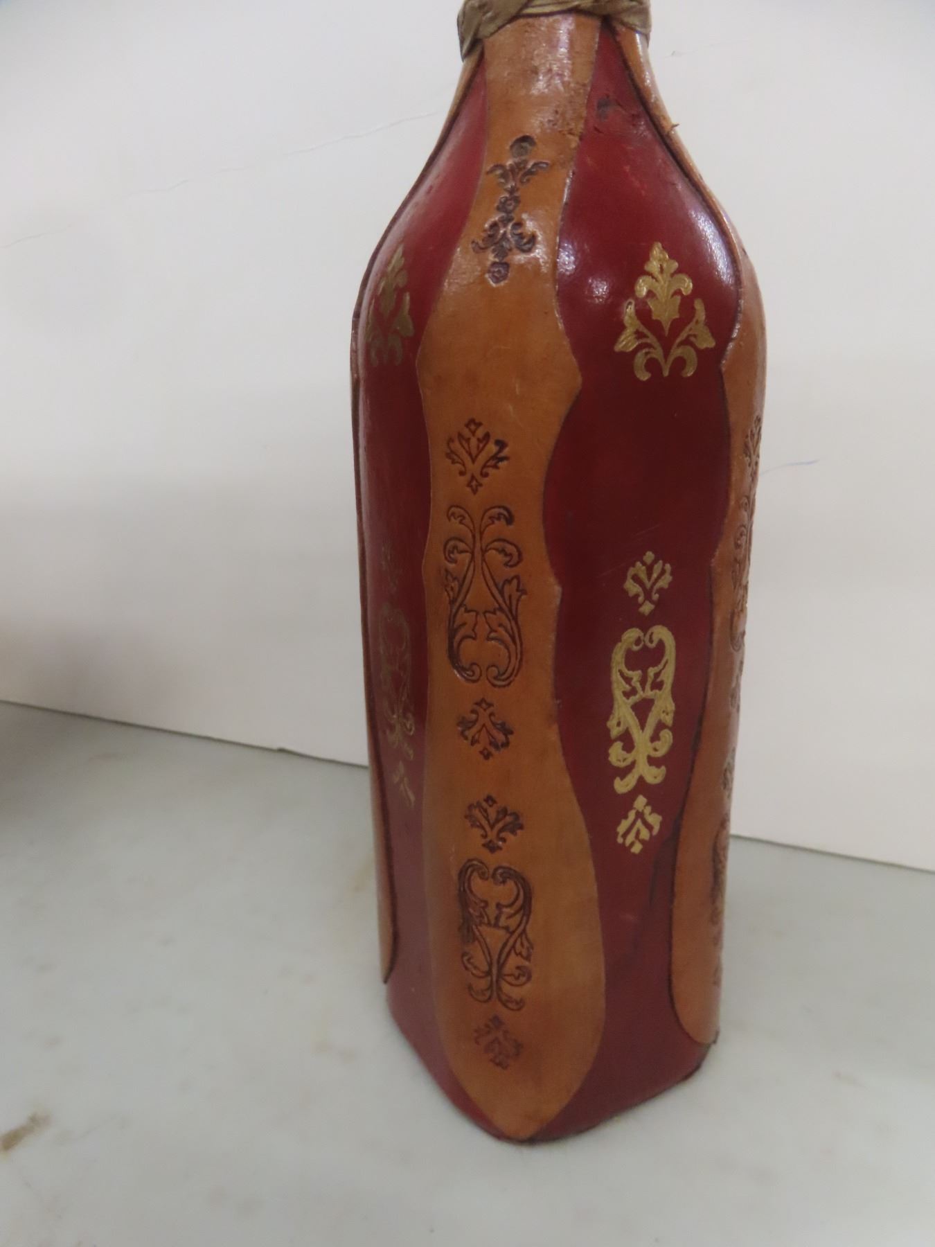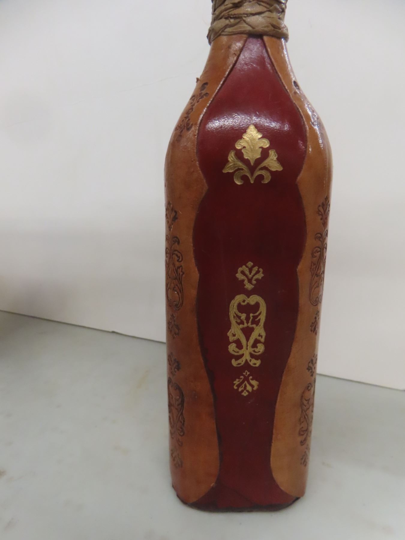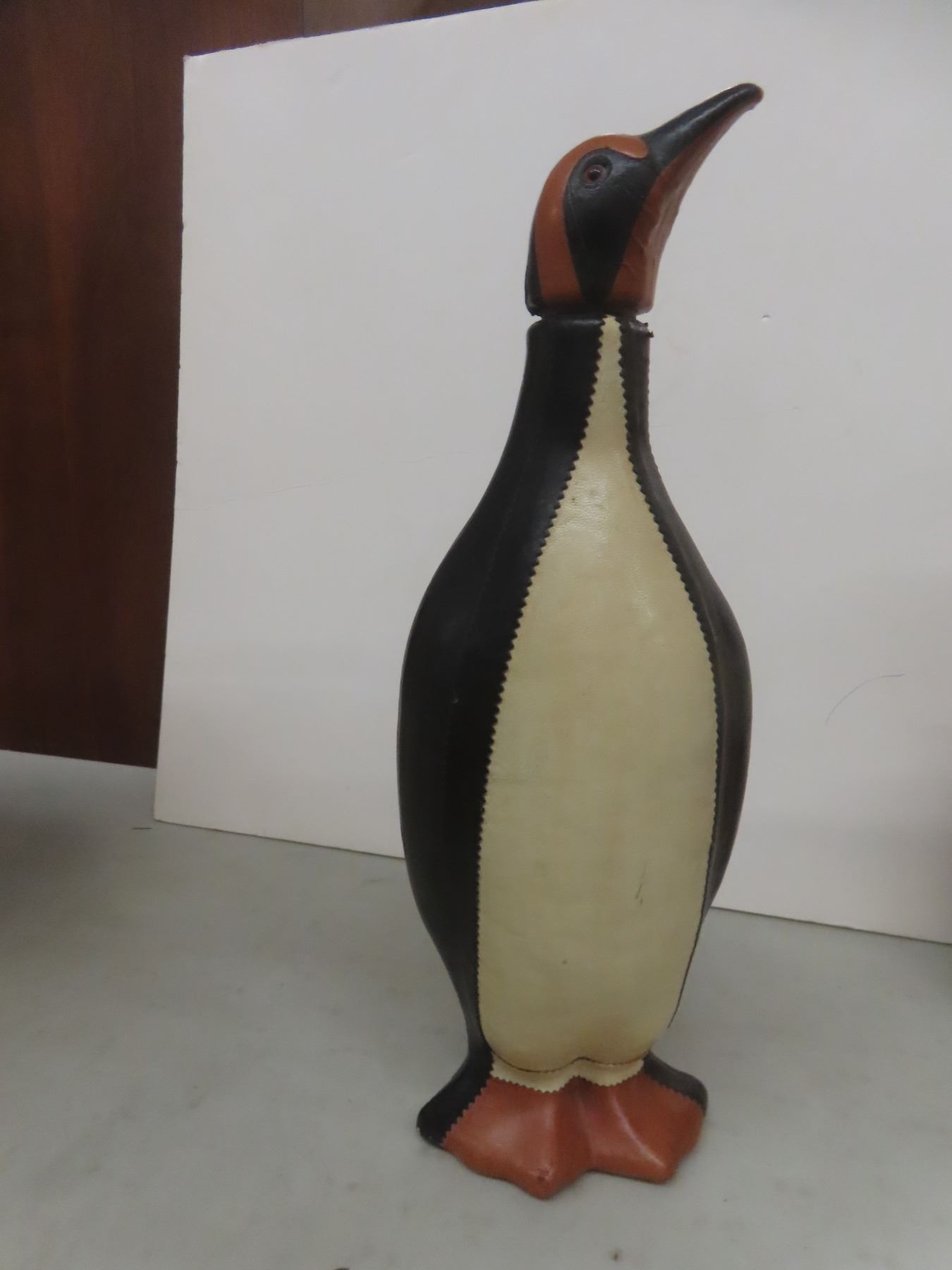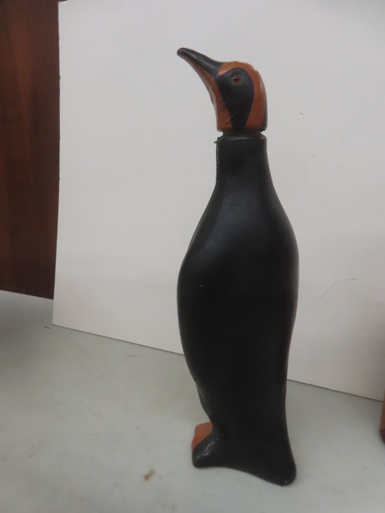 Two Vintage Italian Leather-Wrapped Decanters Including Penguin Wrapped