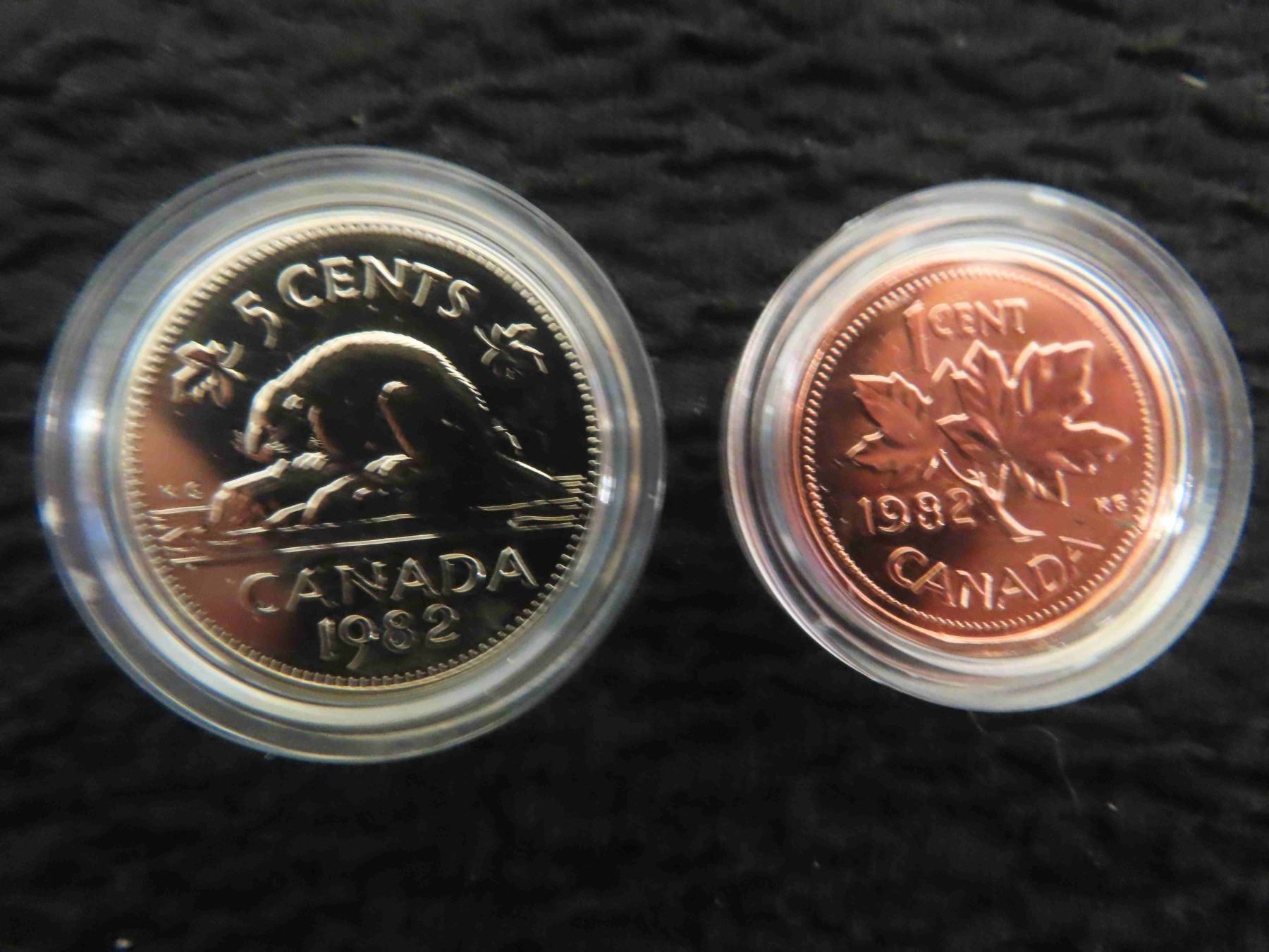 Two sets 1982 RCM 6 coin specimen sets, in original storage box, hard sided folder, with RCM