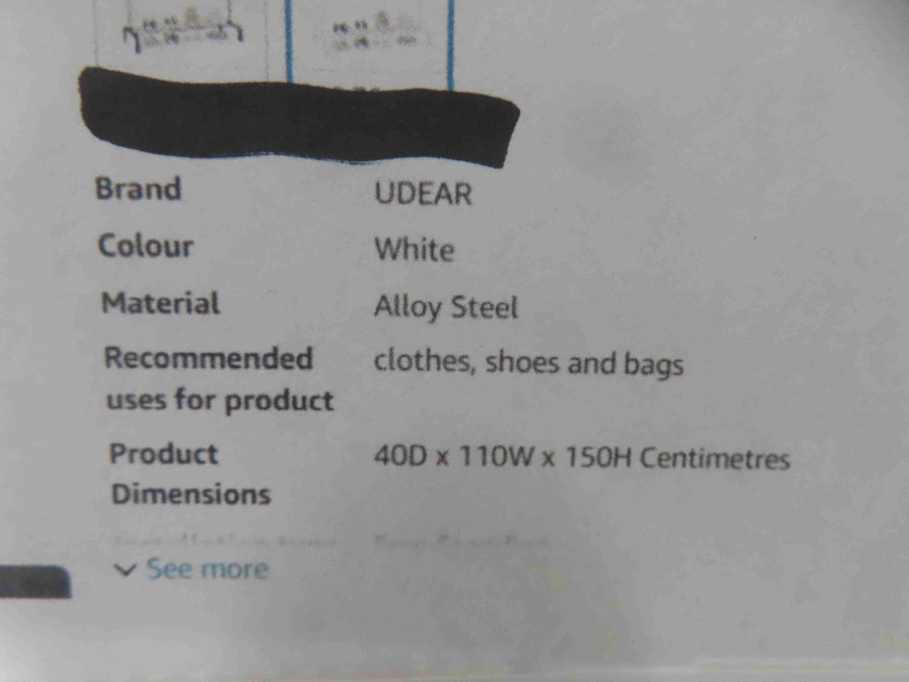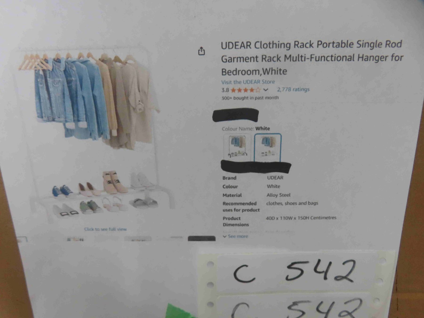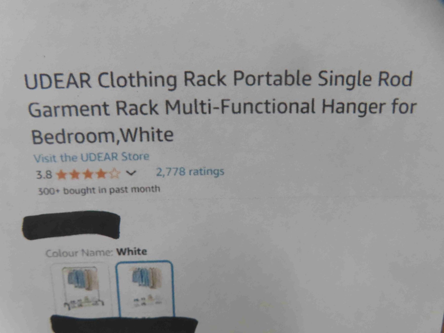 UDEAR Clothing Rack Portable Single Rod Garment Rack Multi-Functional Hanger for Bedroom,White - New or Store Return