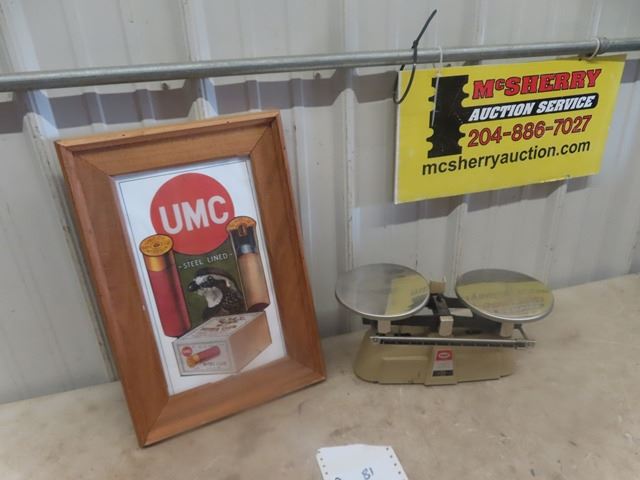 UMC Ammo Framed Paper Advertising 12"x 18" & Balance Scale