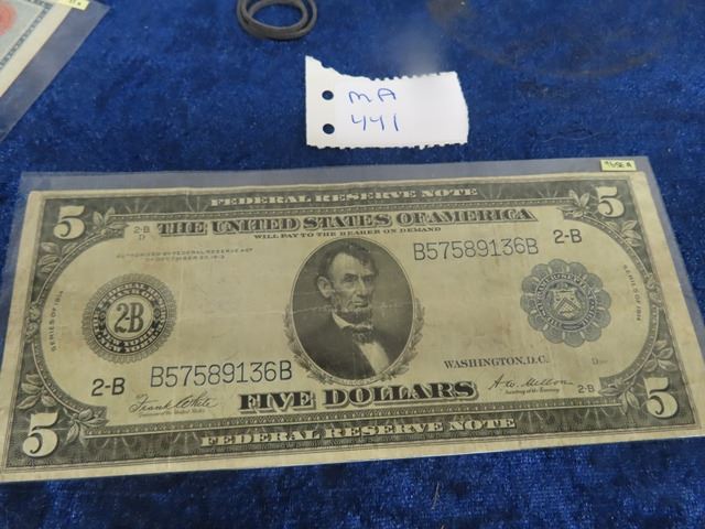 US 1913 $5.00 Bank Note #359B CAT $$ Fine Cond