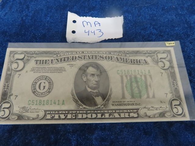 US 1934 A $5 Bank Note Lincoln $429L Mint Cond