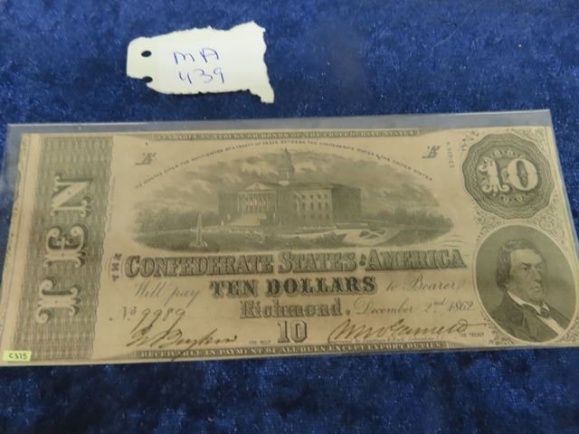 US Confederate $10 Bank Note Richmond Virginia #1962 #C375 UNC
