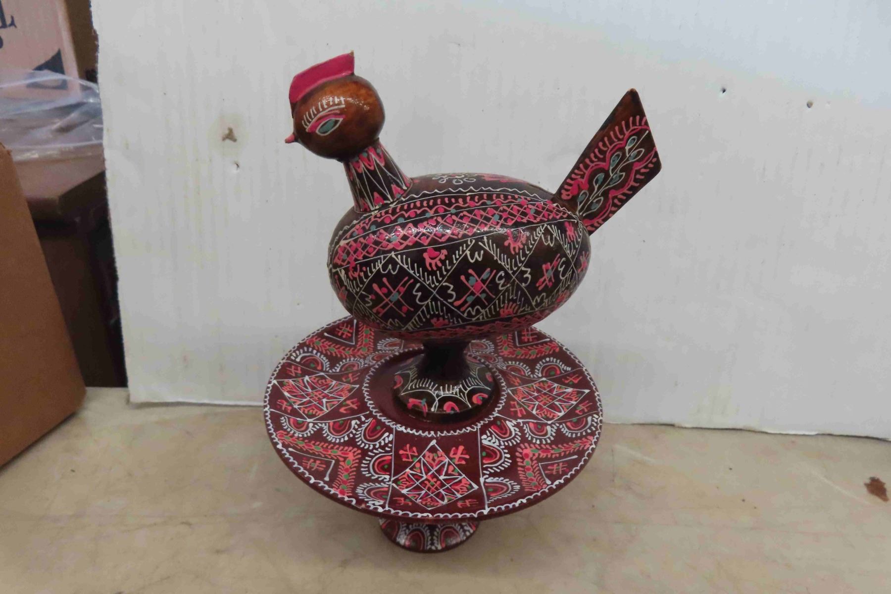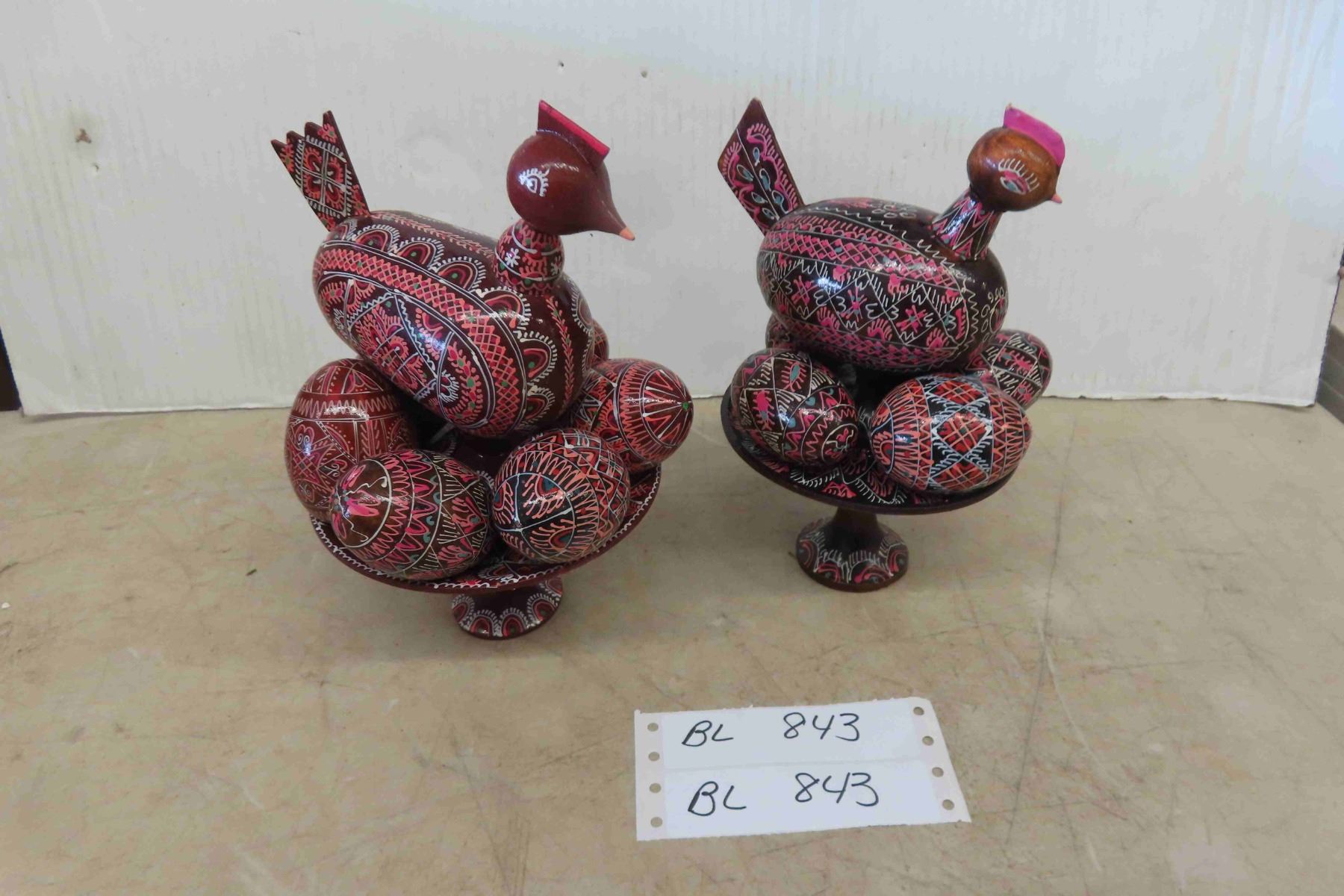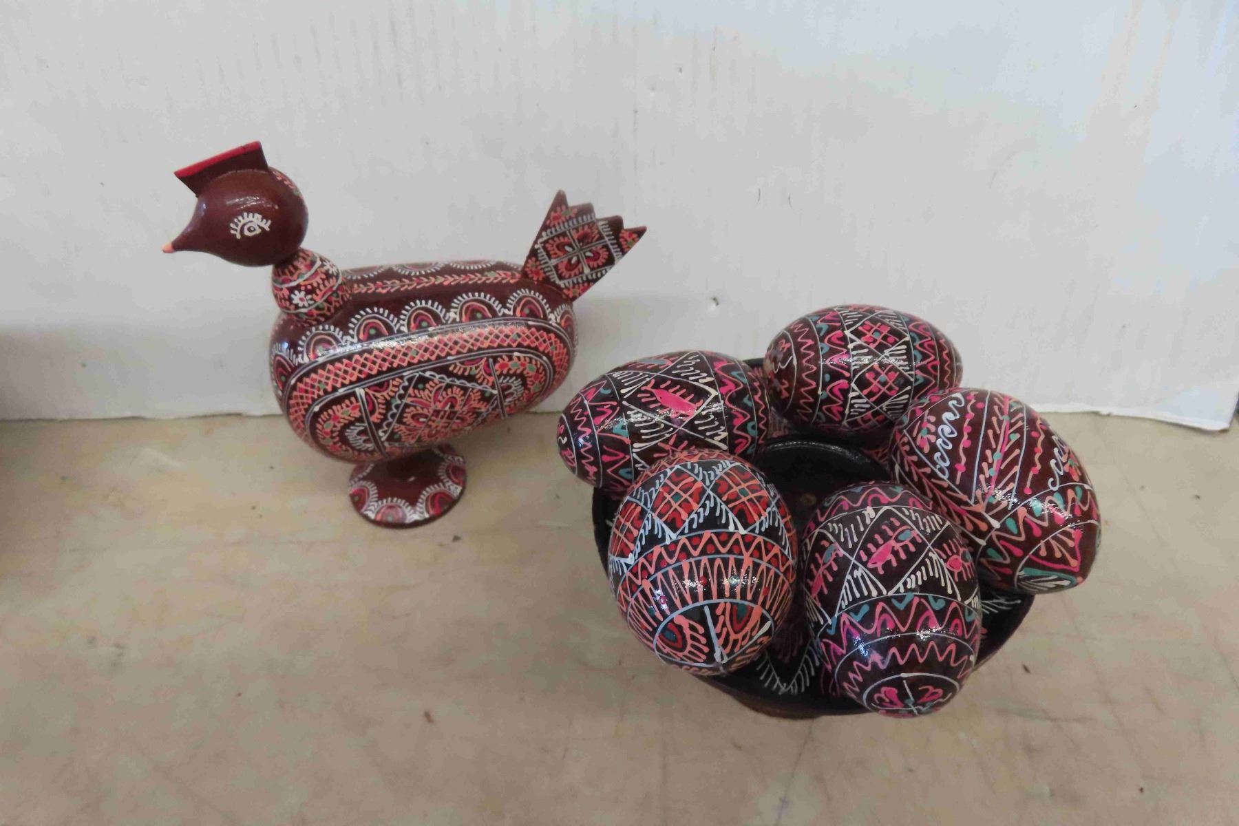 Ukrainian Hand Carved / Painted Wooden Chicken & Eggs