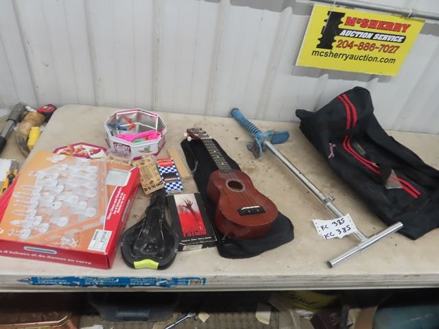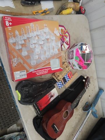 Ukulele, Chess Game, Bicycle Seat & Pogo Stick
