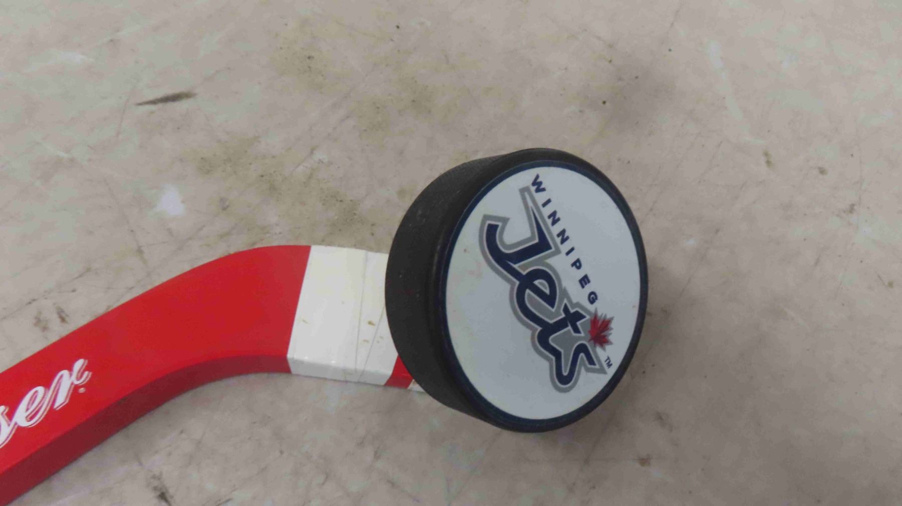 Unique Winnipeg Jets Buedweiser Beer Tap with Hockey Puck and Stick as Handle - Complete