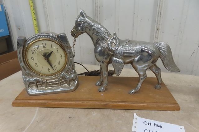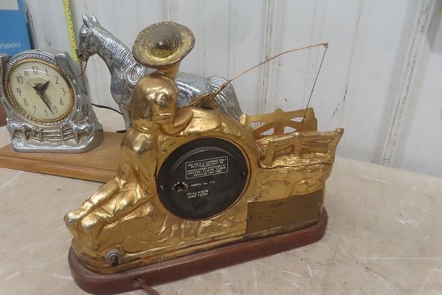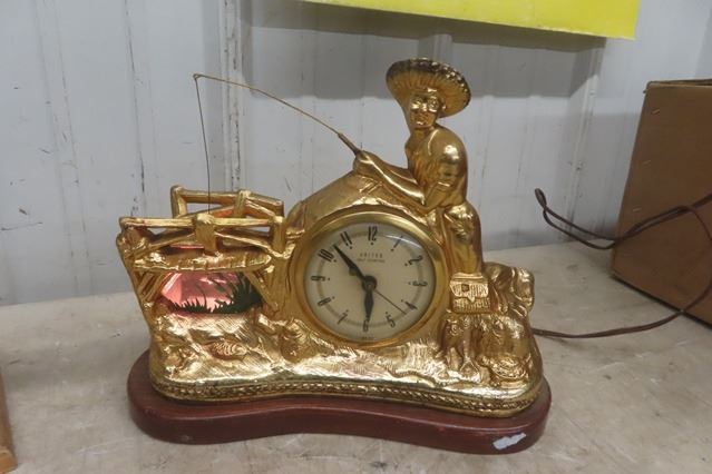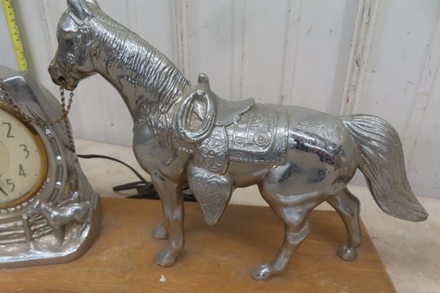 United Asian Fisherman Clock - Works + Snider Clock with Chrome Horse