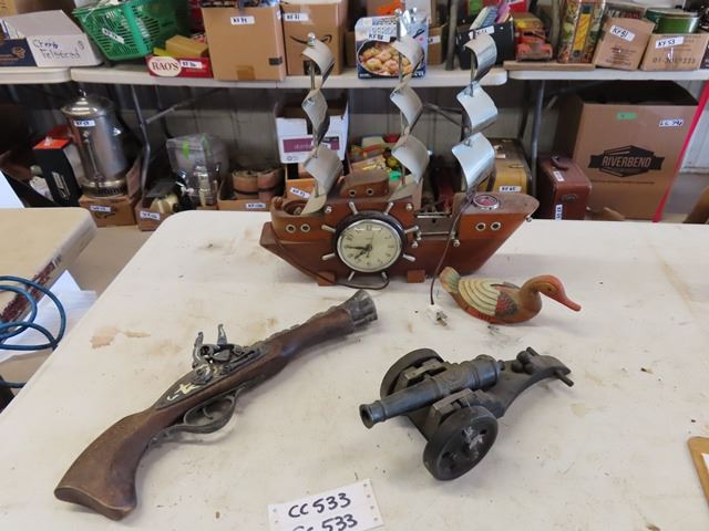 United Boat Clock Chrome Sails, Wall Hanger Faux Gun, Decorative Cannon, Wooden Duck