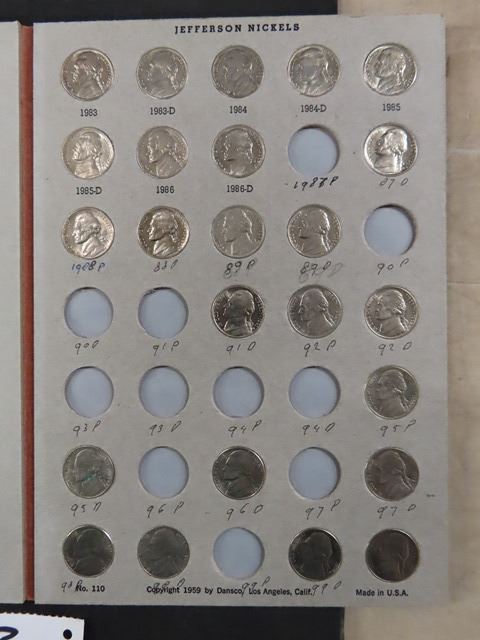 United States Jefferson Nickel Collector Book 1938 - 1999 ( missing a few)