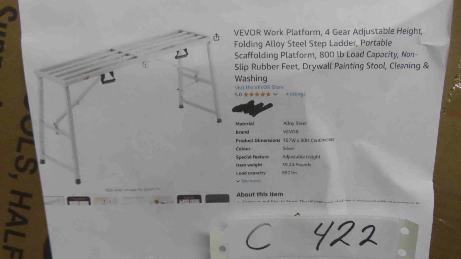 VEVOR Work Platform, 4 Gear Adjustable Height, Folding Alloy Steel Step Ladder, Portable Scaffolding Platform, 800 lb Load Capacity, Non-Slip Rubber Feet, Drywall Painting Stool, Cleaning & Washing - New or Store Return