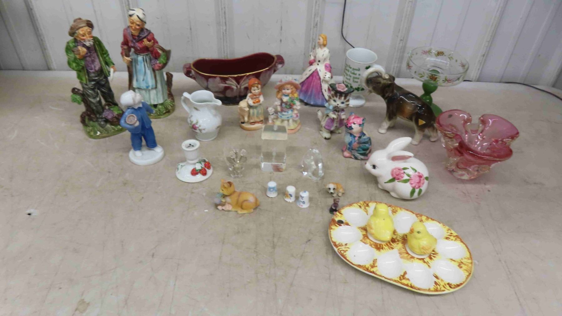 Variety of Figurines : Old Couple, Royal Albert , Royal Dux , Deviled Egg Plate with Salt and Pepper , Plus