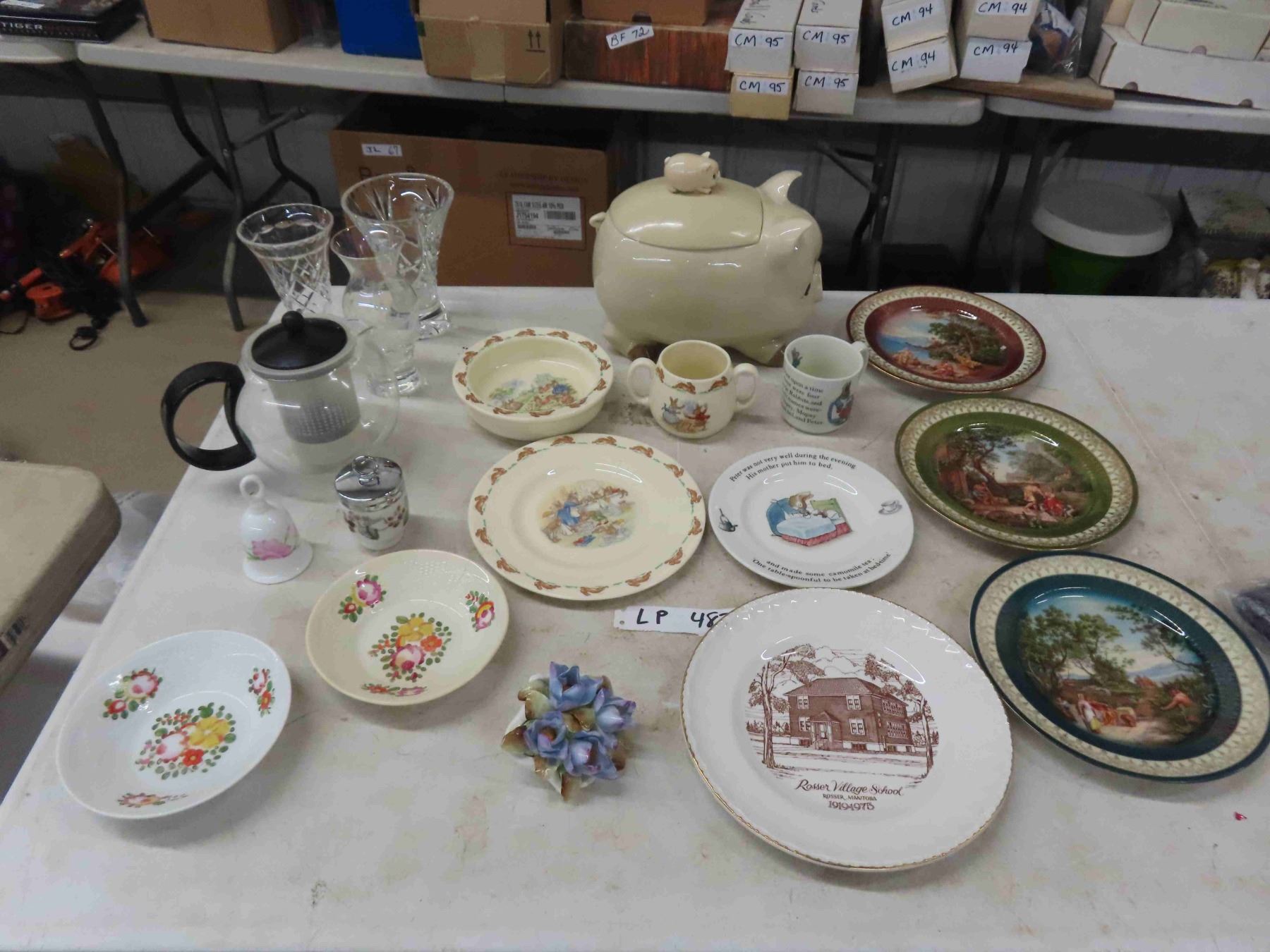 Various Decorative Plates, Vases, Bunnykins & Piggy Cookie Jar, plus more