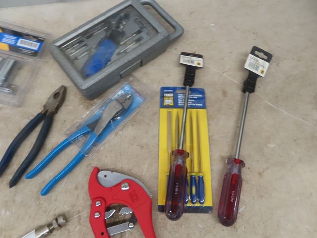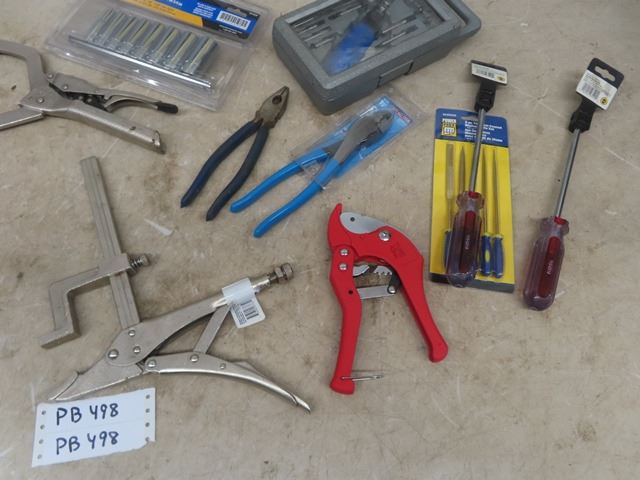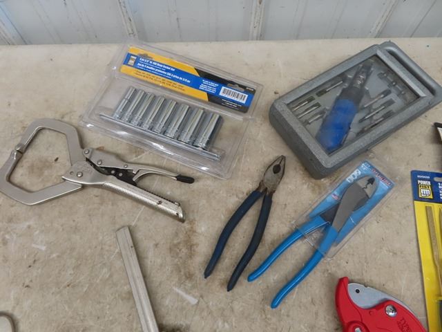 Various Vice Clamps, File Set, Sockets, Pliers, Screwdrivers