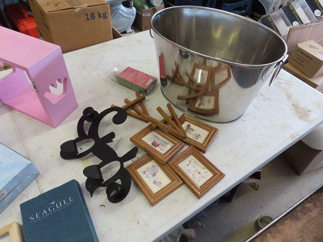Various Wall Decorations ; Pictures, Shelf Boxes, Chrome Tub