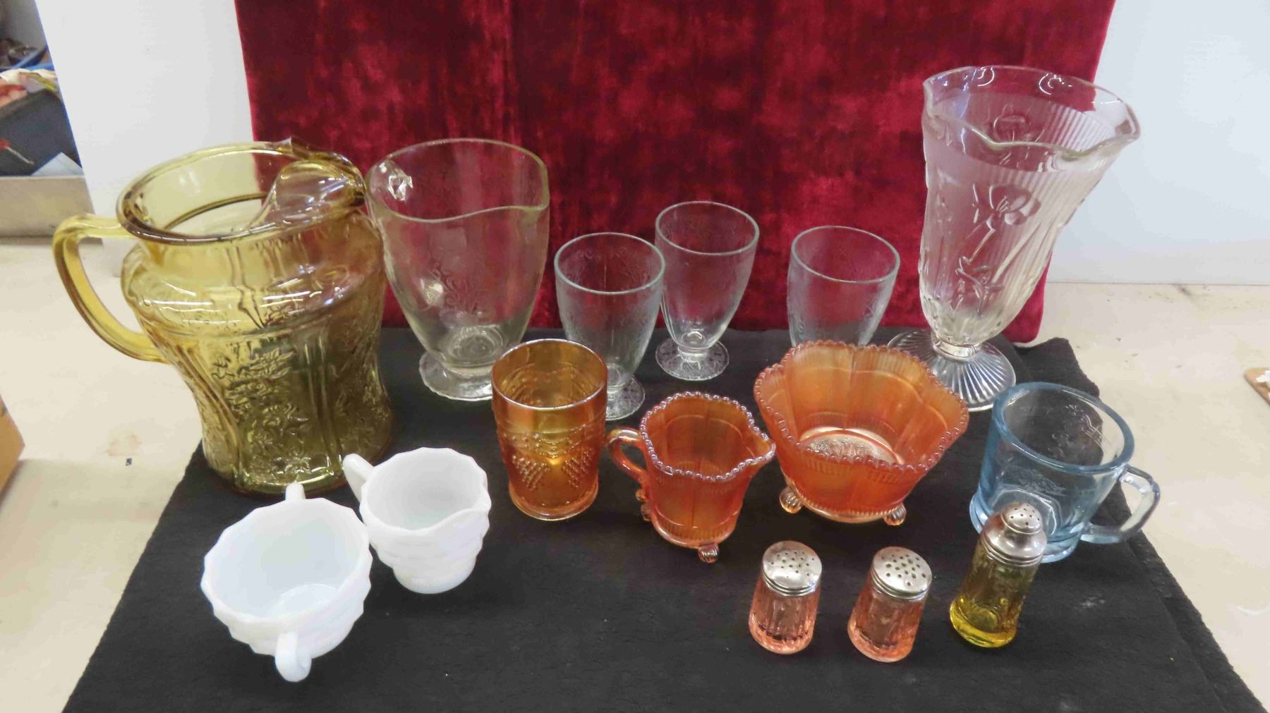 Vase, Pitchers, Salt and Peppers, Milk Glass Cream and Sugar, Carnival Glass, Depression Glass, Plus
