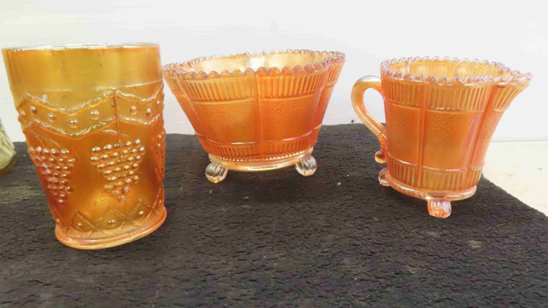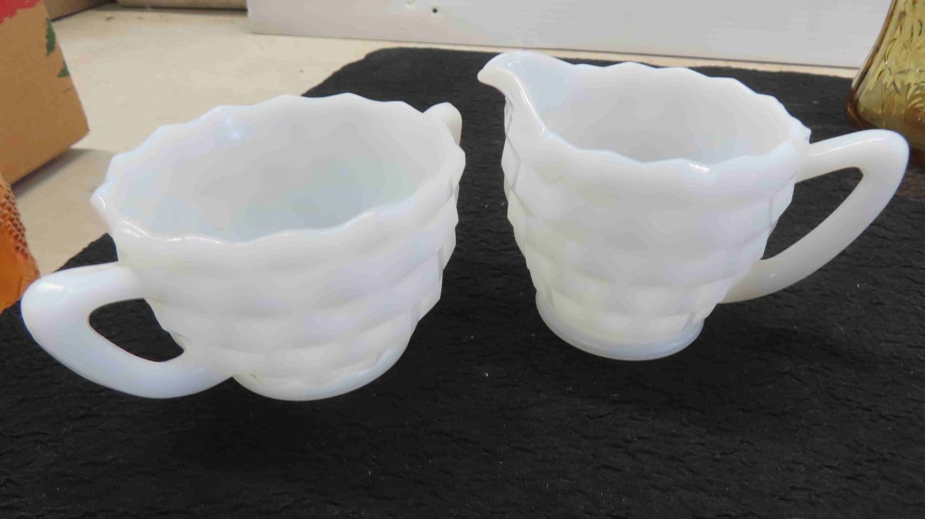 Vase, Pitchers, Salt and Peppers, Milk Glass Cream and Sugar, Carnival Glass,