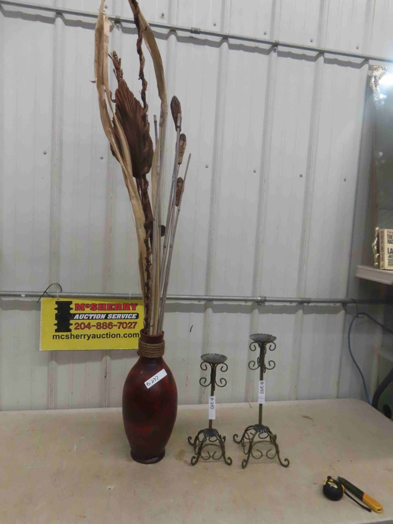 Vase with Décor + 2 Wrought Iron Candle Holders