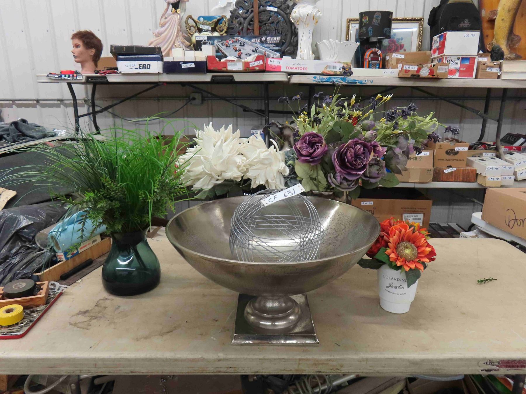 Vases, Fake + Silk Flower Arrangement & Large Basin