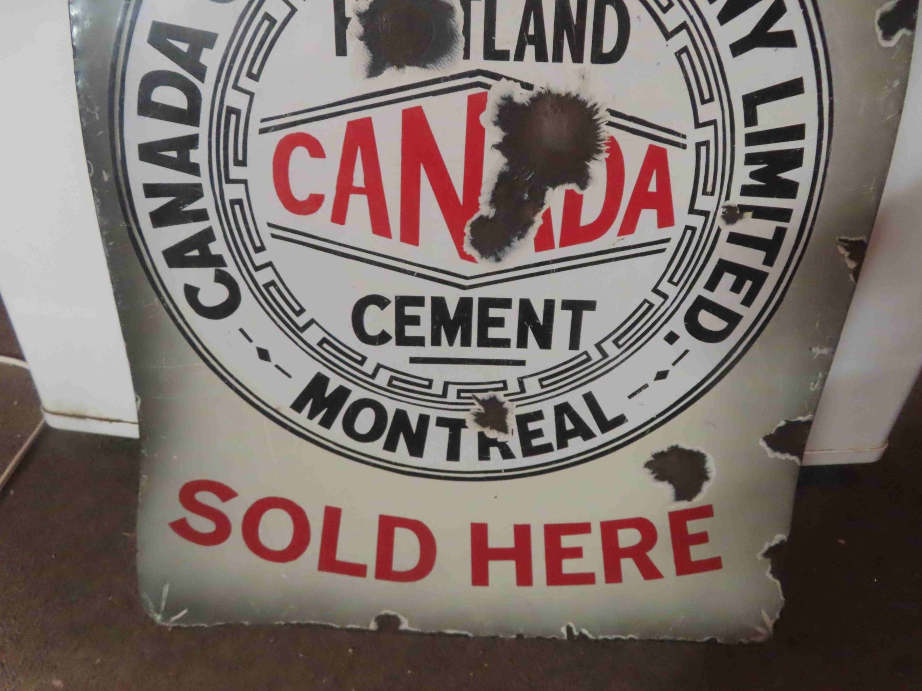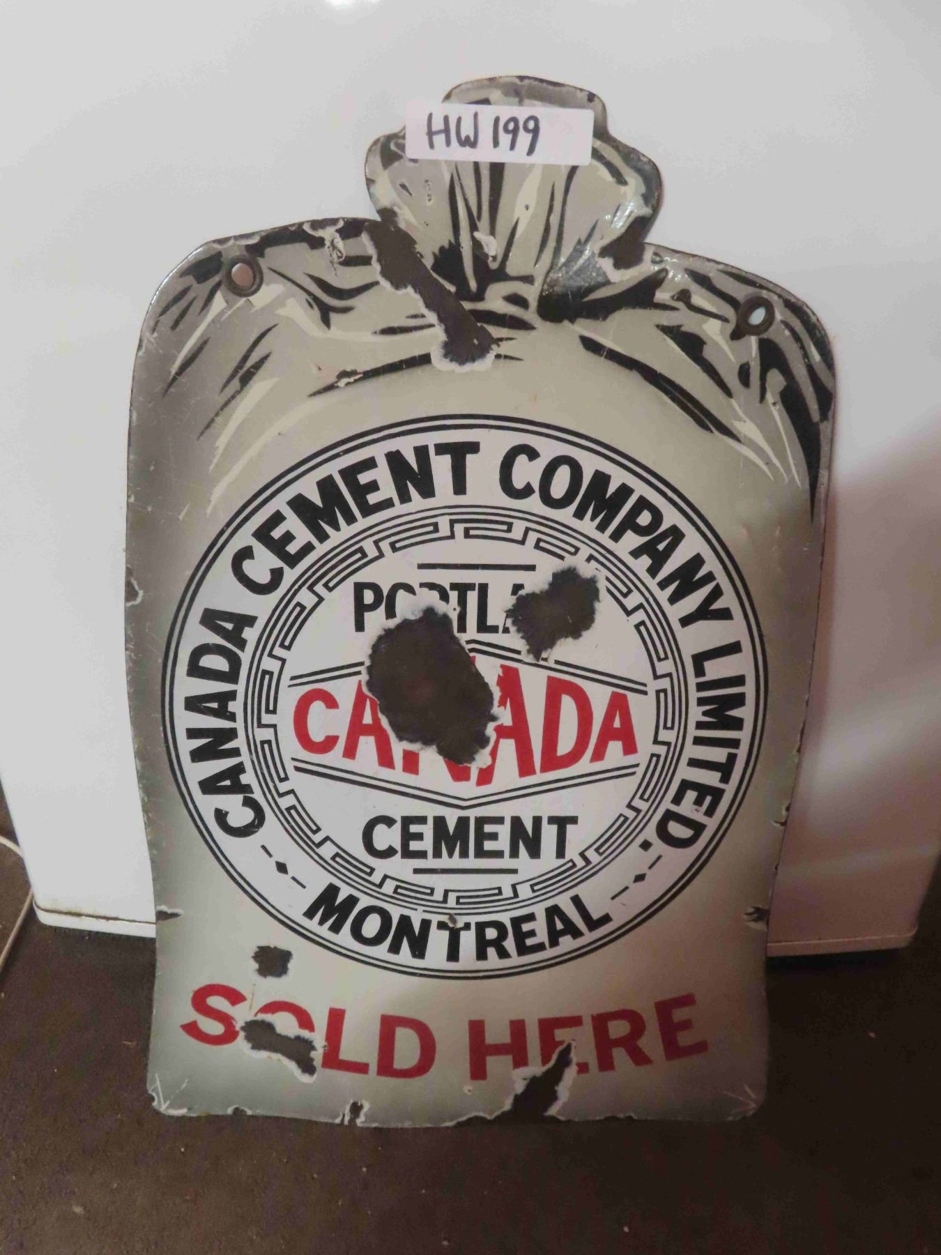 Very Cool Double Sided Porcelain Die Cut Portland Cement Advertising Sign Shaped Like a Cement Bag 25'' x 16''
